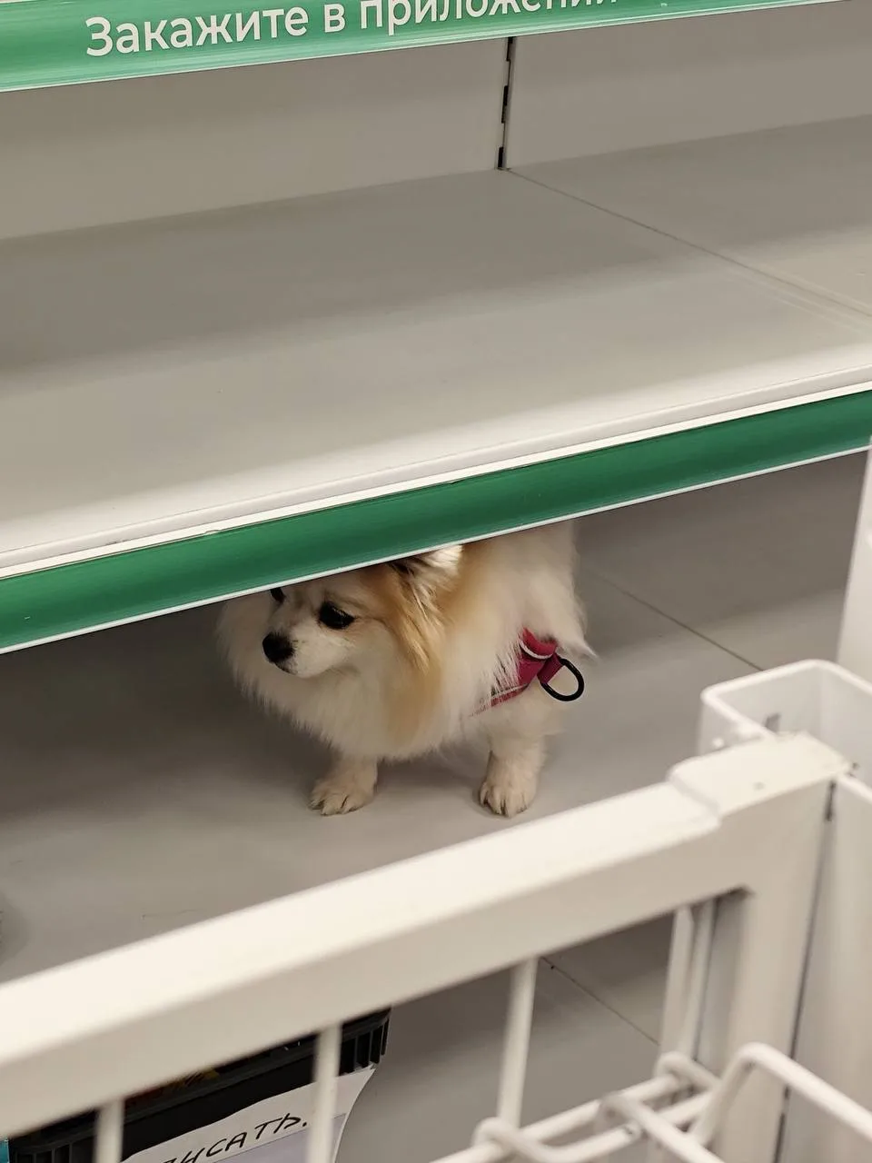 Животное мирно устроилось среди товаров, но посетители обходили его стороной. @RetailBis