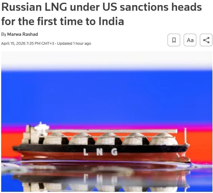 Агентство Reuters сообщает, что Индия впервые за последний год начала закупки российского сжиженного природного газа. А куда деваться – если Ормузский пролив закрыт?
