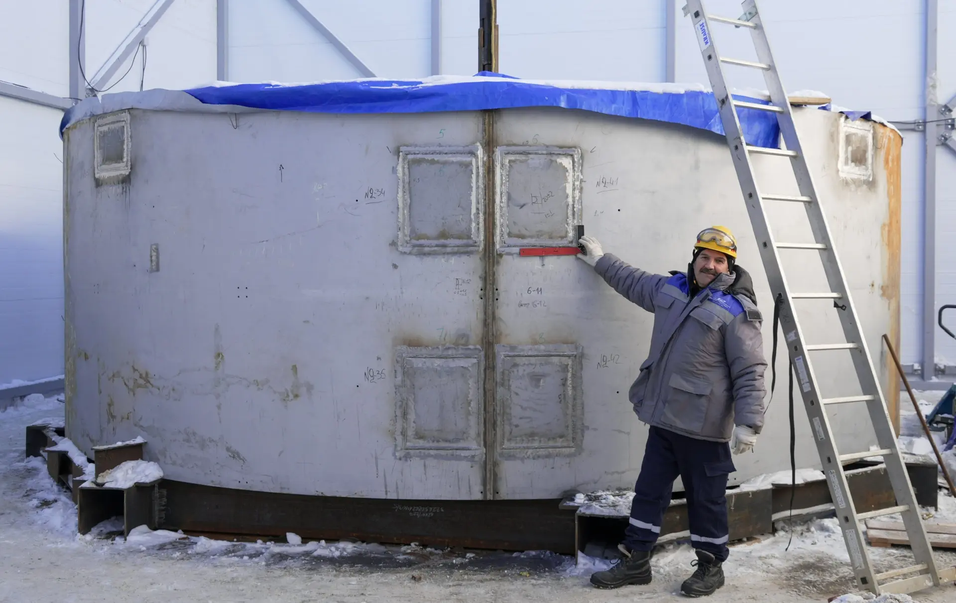 Монтажники и строители собрали и забетонировали нижний блок, получив конструкцию диаметром более шести и высотой более двух метров, заполненную специальным серпентинитовым бетоном. Вместе с верхним блоком высота сухой защиты составит почти семь с половиной метров.