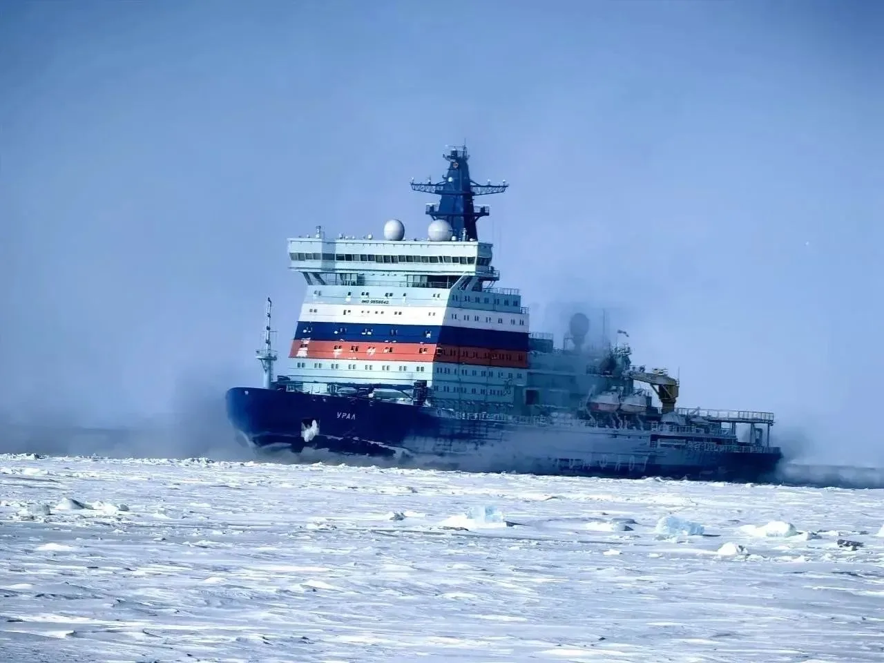 Атомный ледокол «Урал» на Енисее.
