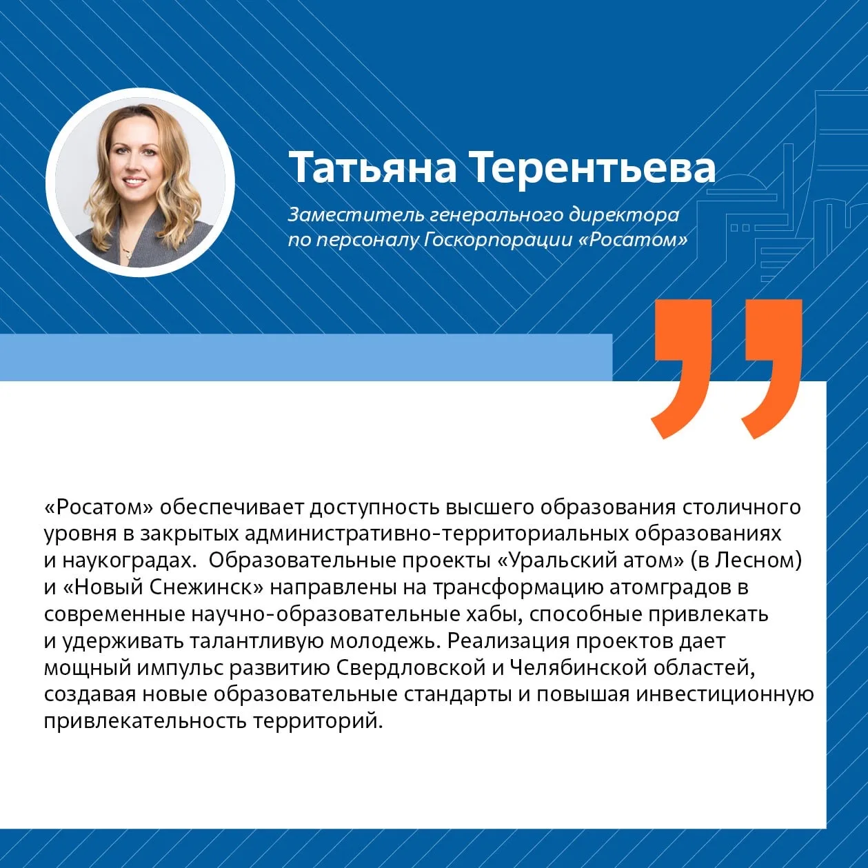 Татьяна Терентьева, заместитель генерального директора по персоналу «Росатома»