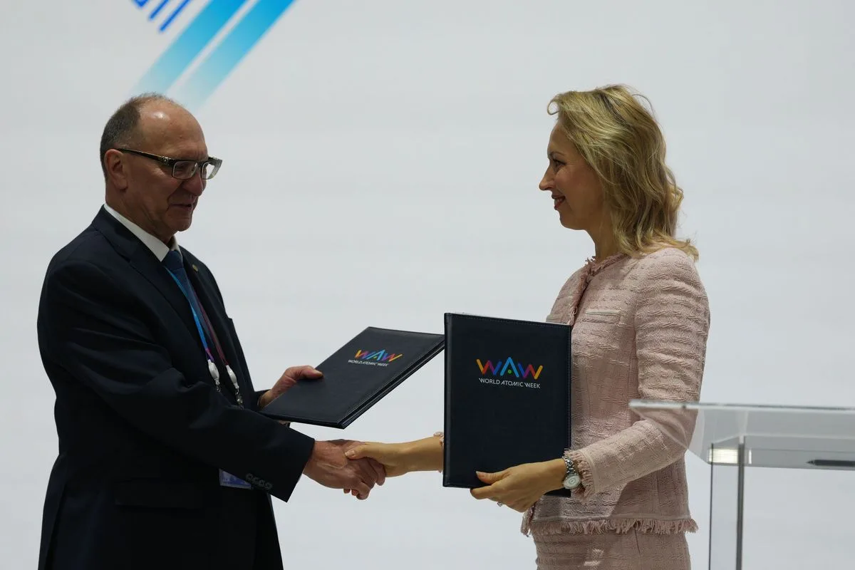 На международном форуме «Мировая атомная неделя» госкорпорация подписала соглашения о сотрудничестве в рамках Международного научно-образовательного центра ядерного и смежного образования «Обнинск Тех» с Нижегородским государственным техническим университетом им. Алексеева, Балтийским федеральным университетом им. Канта и Всероссийской академией внешней торговли.