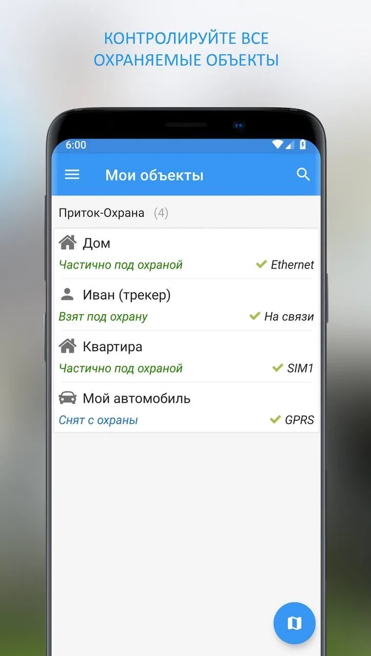 📲 Управление оборудованием прямо со смартфона: ставьте объект на охрану, снимайте с охраны, управляйте подключёнными устройствами.
