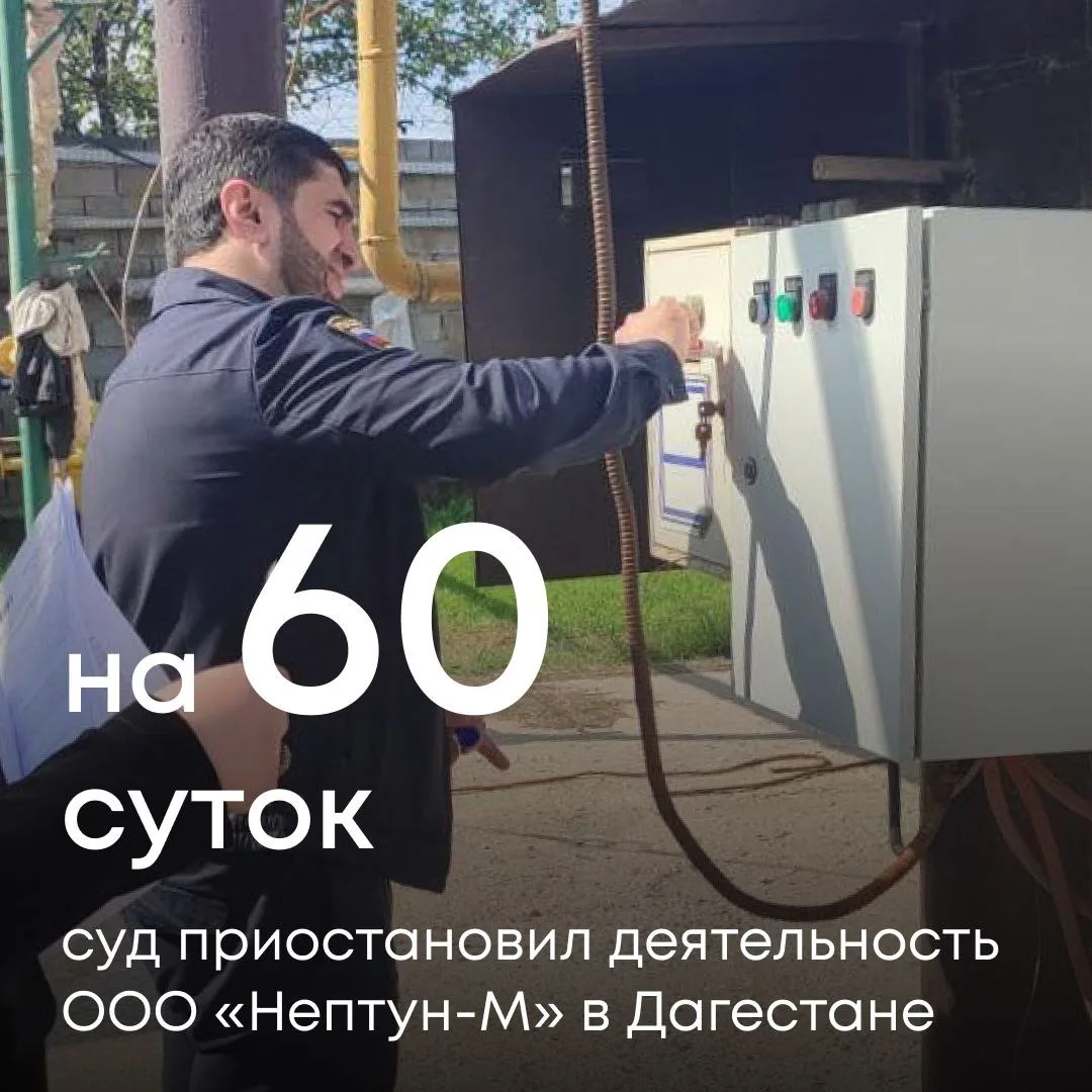 📍Рассмотрев материалы проверки, Избербашский городской суд признал ООО "Нептун-М" виновным и назначил административное наказание — приостановление деятельности на 60 суток.