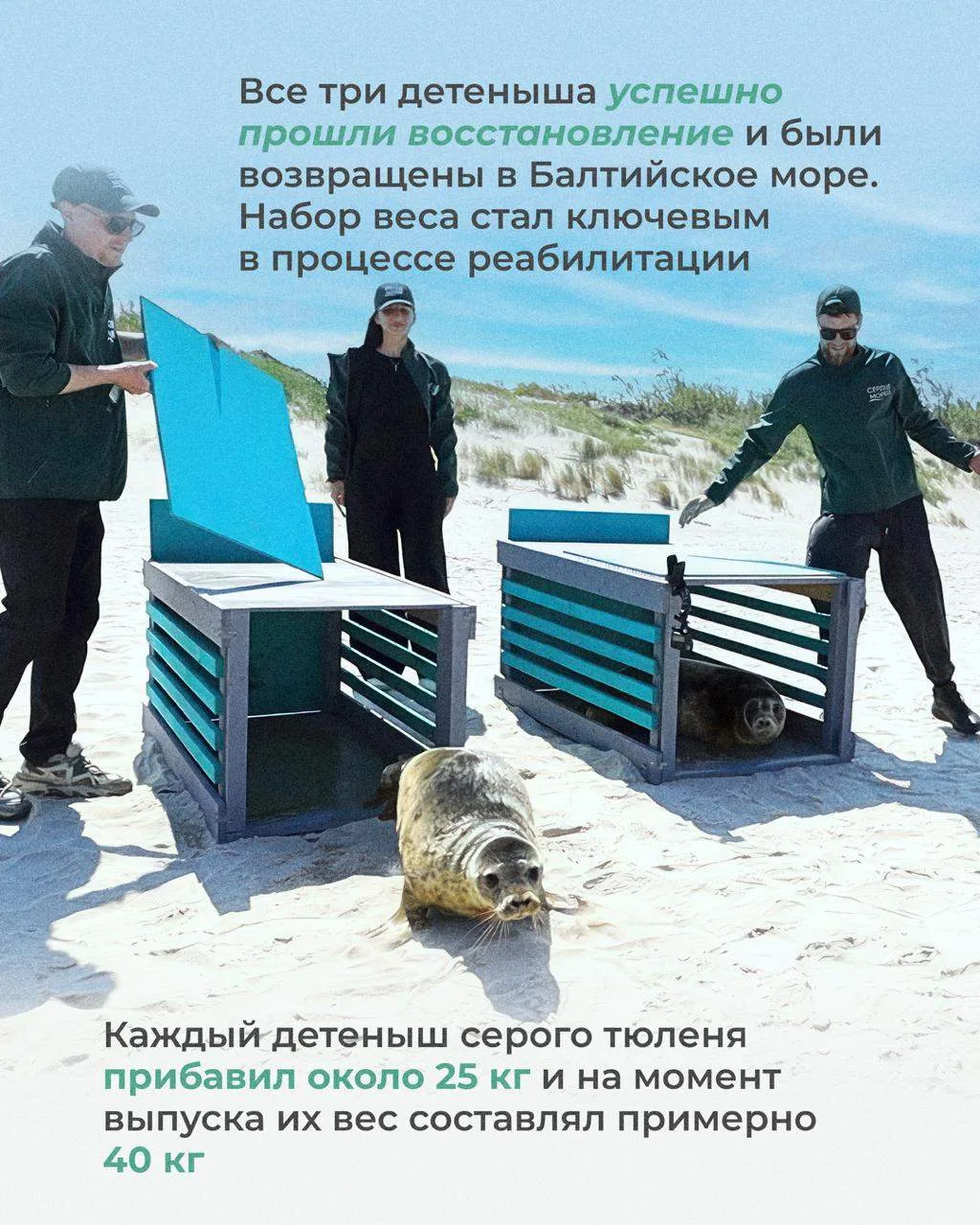 После оказания помощи 24 серых тюленя, 6 кольчатых нерп и черноморская афалина были возвращены в природную среду. Основные регионы, где фиксировались такие случаи – Ленинградская и Калининградская области.