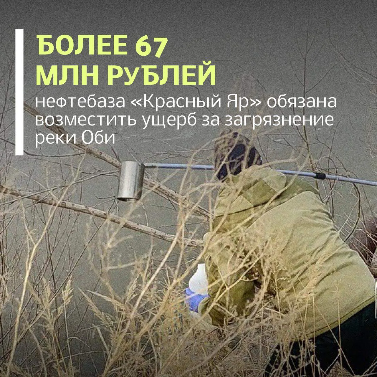 Суд обязал АО «Нефтебаза «Красный Яр» возместить ущерб, причиненный реке Оби, в размере более 67 млн рублей.