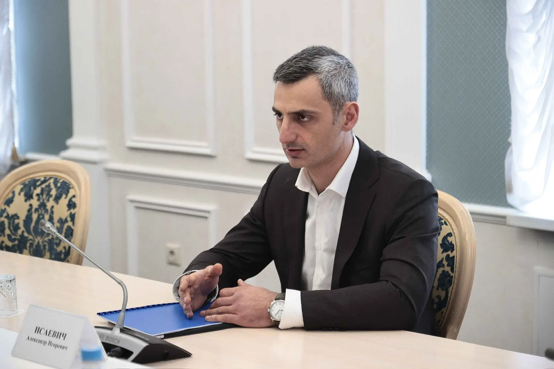 ▫️Ставлю задачу максимально бережно подходить к сохранению объекта культурного наследия. Ознакомился с работой наших реставраторов. Сейчас в Голубой гостиной специалисты тщательно воссоздают резные узоры лепнины. Обсудили концепцию будущей экспозиции: её основные направления будут посвящены приезду Александра Пушкина в Симбирск, семье Языковых, Николаю Карамзину. Также поручил проработать варианты по созданию в музее симбирцитовой комнаты.