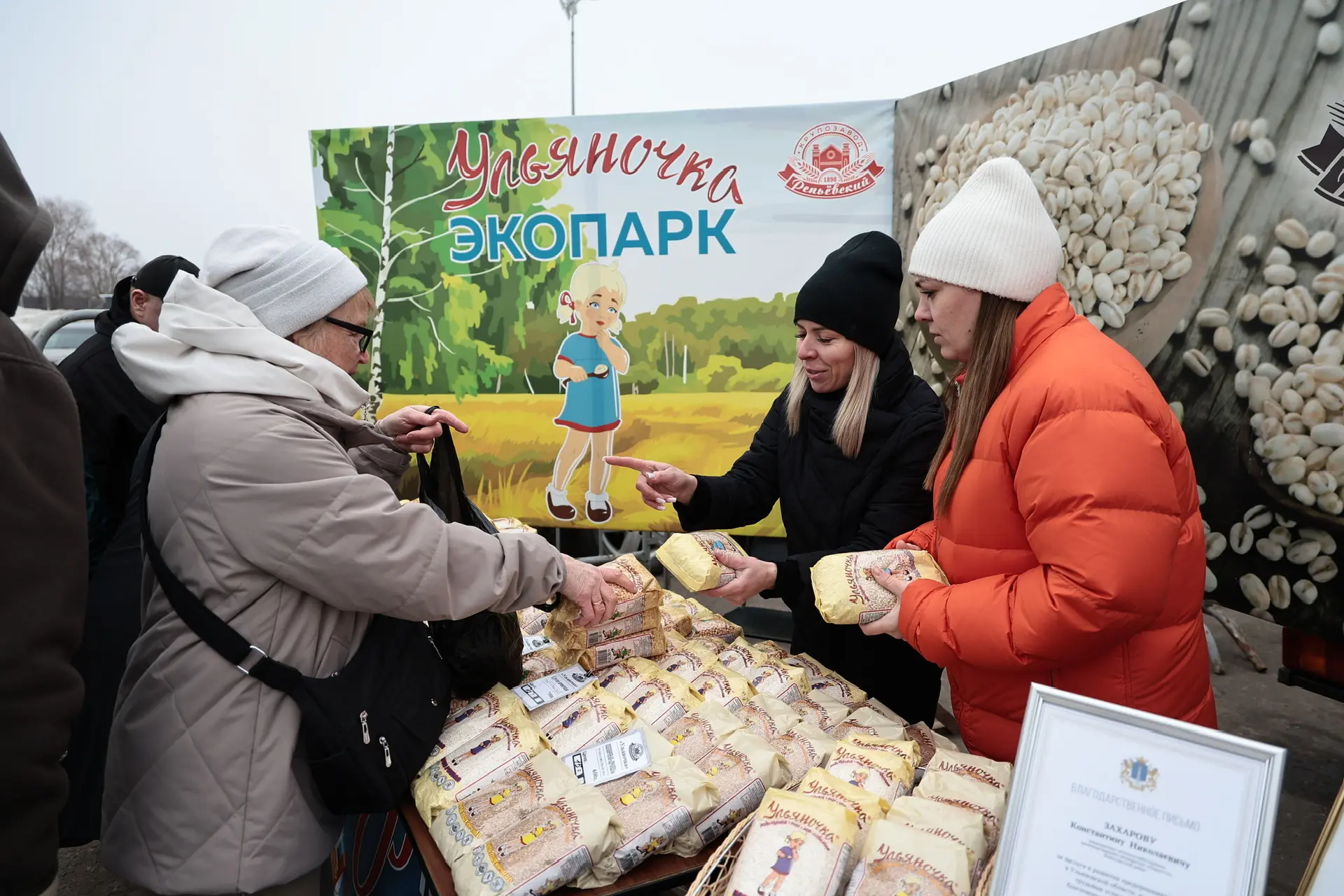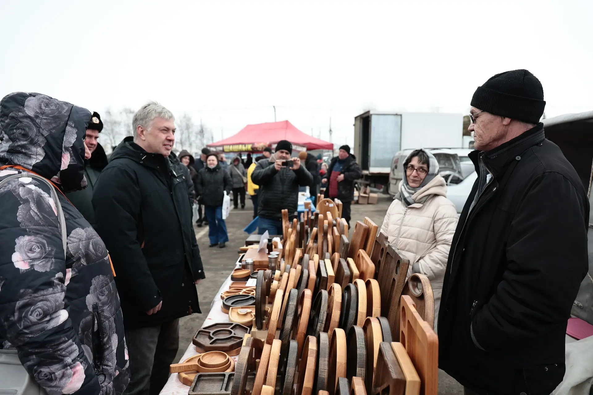 ▫️Здесь можно встретить продукцию наших получателей соцконтракта: сегодня это верхняя мужская одежда, деревянная посуда, сувениры, пуховые и шерстяные изделия. Среди продавцов Вячеслав Маркевич из Димитровграда – взял соцконтракт в 2023 году, помогают дочь и жена. Семья делает из дерева тарелки, доски и другую продукцию. Качество отличное, купил деревянную доску. Следующая ярмарка 28 марта на проспекте Гая в Железнодорожном районе. Расписание ярмарок здесь