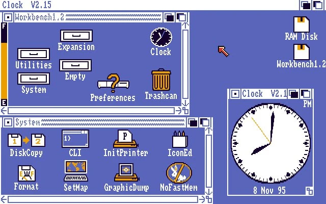 • Также у Amiga был свой AmigaDOS (disk operating system), в котором уже имелся графический интерфейс и доступ к файловой системе, так что в некоторых случаях можно было даже не запускать AmigaOS.
