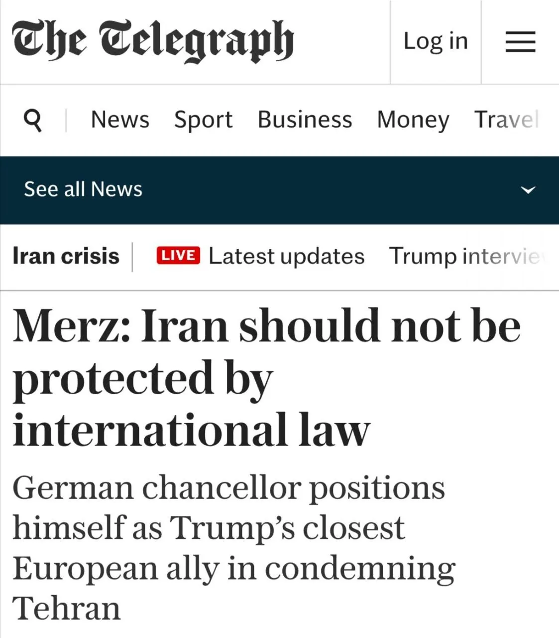 ⚡️Канцлер Германии Фридрих Мерц заявил, что международное право не распространяется на Иран.