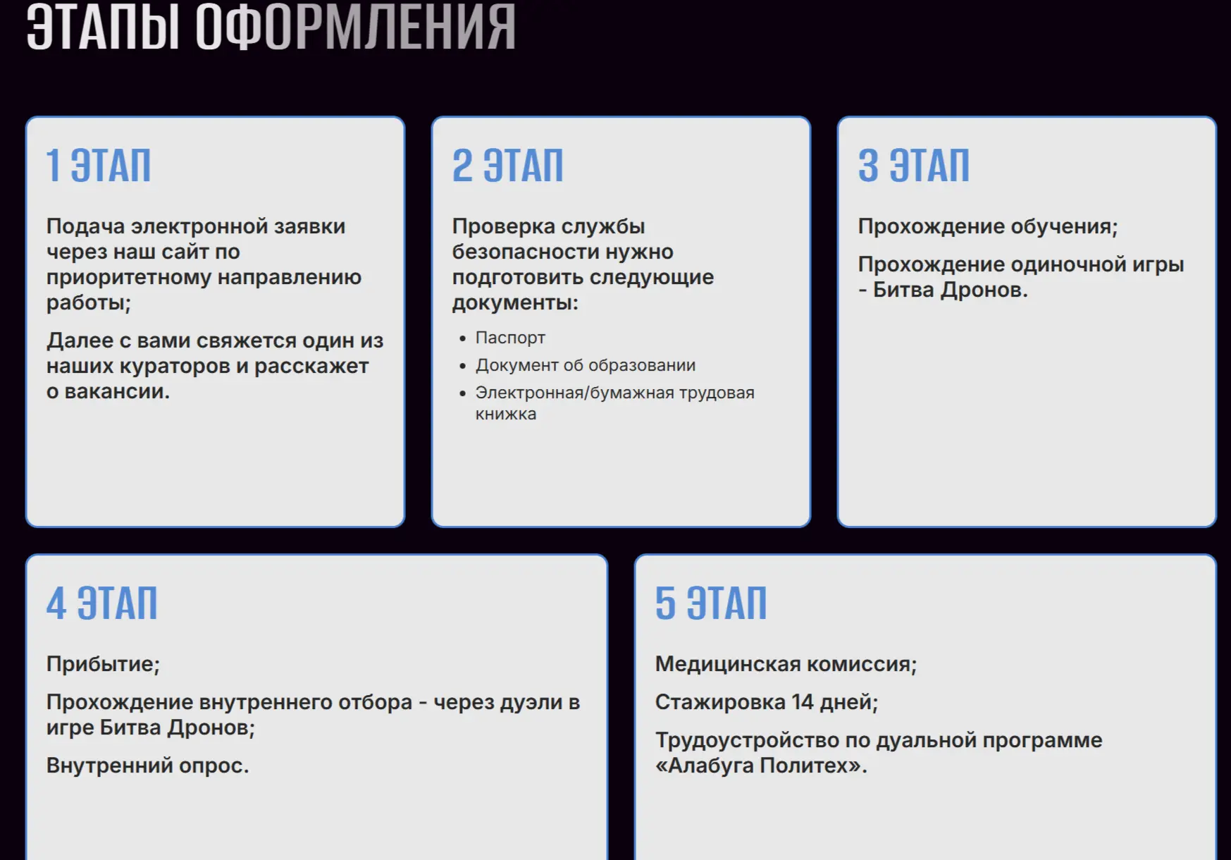 ⚡️Служба проходит в одном из регионов: Орловская область либо командный центр «Алабуга Политех».