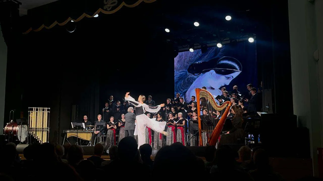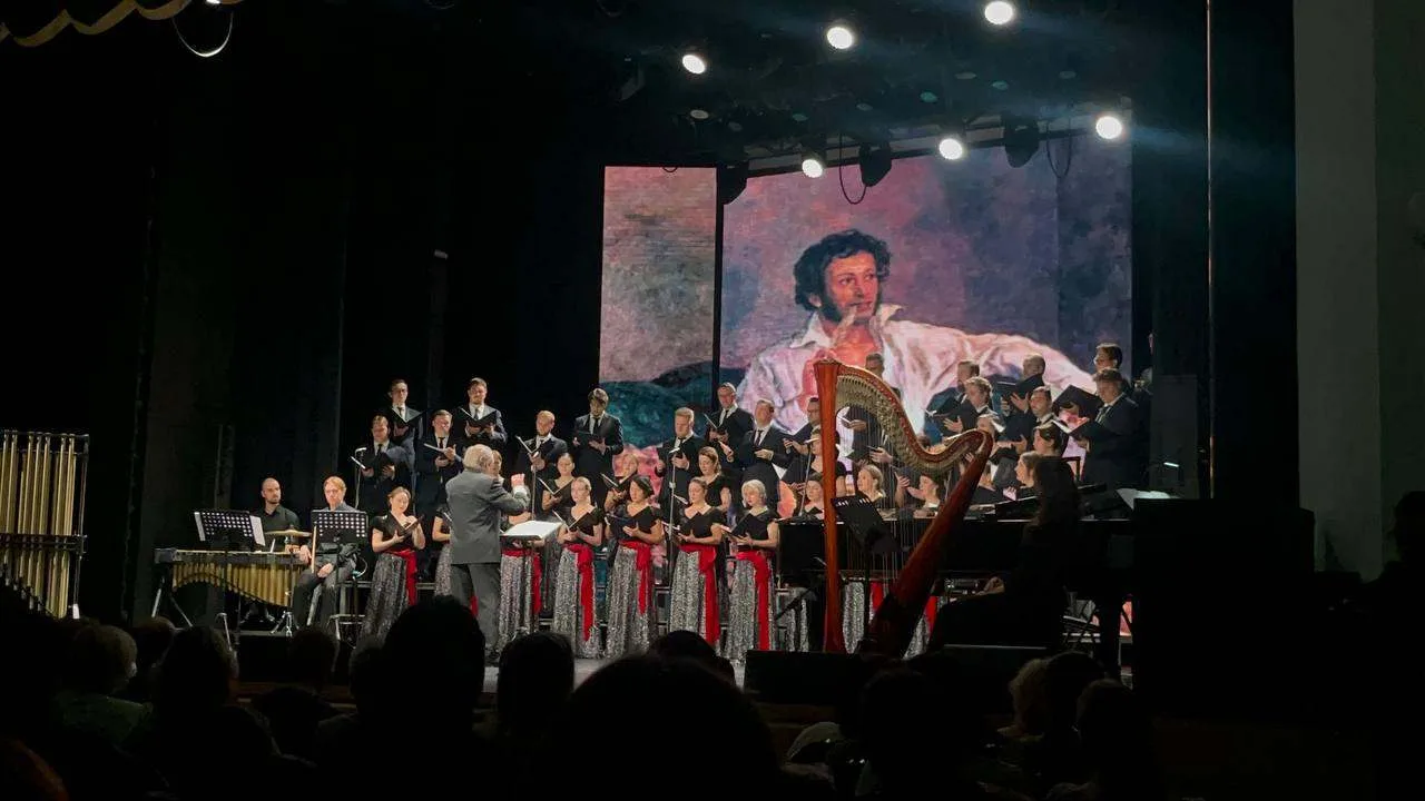Сегодня зрителям представили мультимедийное музыкальное шоу «Пушкинский венок». На сцене - хоровая капелла России имени А. Юрлова под руководством народного артиста РФ Геннадия Дмитряка, ансамбль танца «Красный Яр», лауреаты всероссийских и международных конкурсов. Это не просто концерт, а повествование, где музыка переплетается с ожившими картинами, хореографией с элементами балета, страницами из дневников композитора.