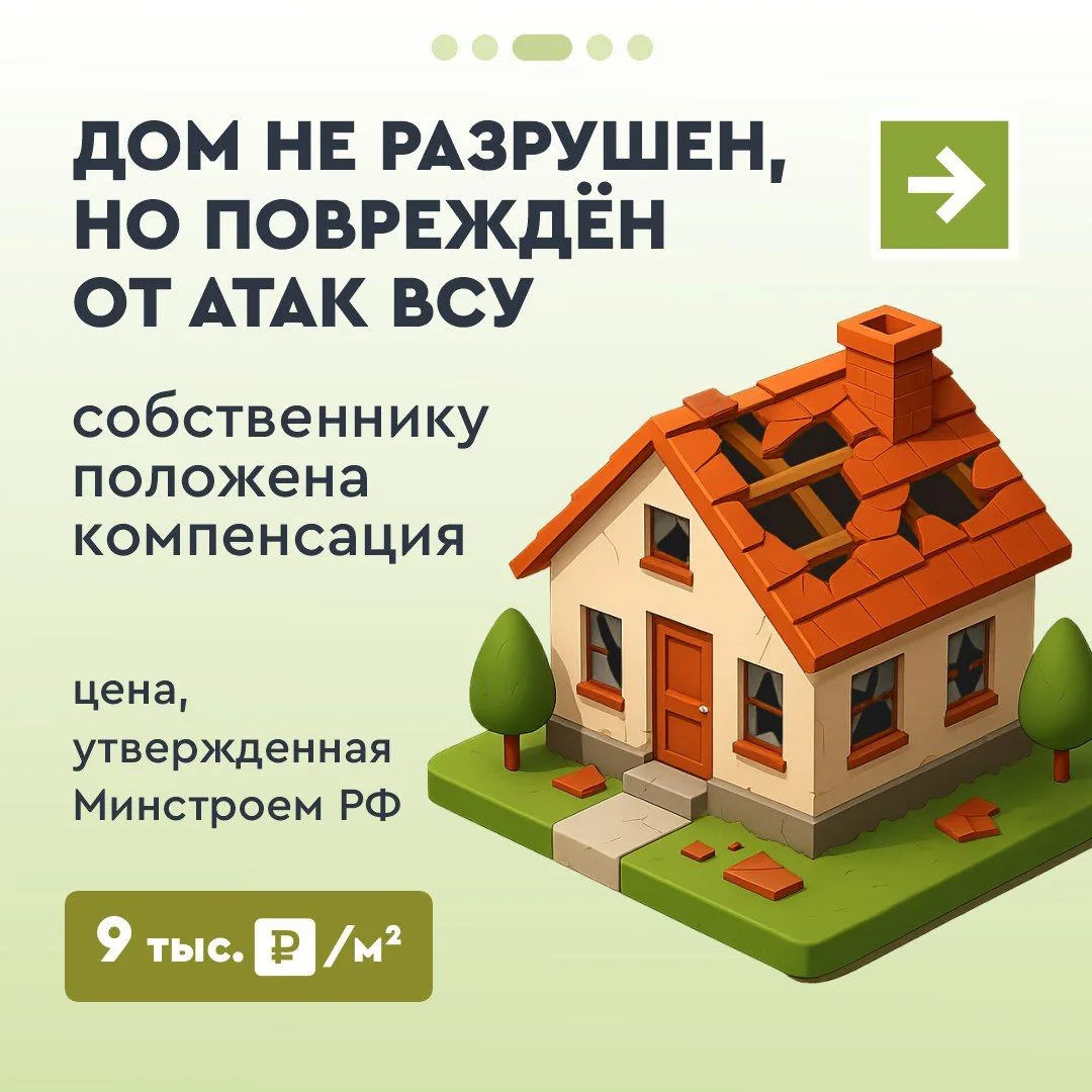 🏠 Меры поддержки жителей курского приграничья по вопросам жилья: помощь при разрушении, повреждении или непригодности дома после 6 августа 2024-го, а также если дом цел, но невозможно вернуться туда из-за оперативной обстановки. Подробнее – в карточках регионального правительства.