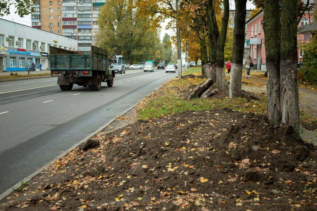 Улица Сумская. Глава города указал, что территория - неухоженная. В плачевном состоянии остановка, плитка рядом с переходом разбита, бордюры поломаны, киоски - в неудовлетворительном состоянии, ветки тополей висят на проводах.