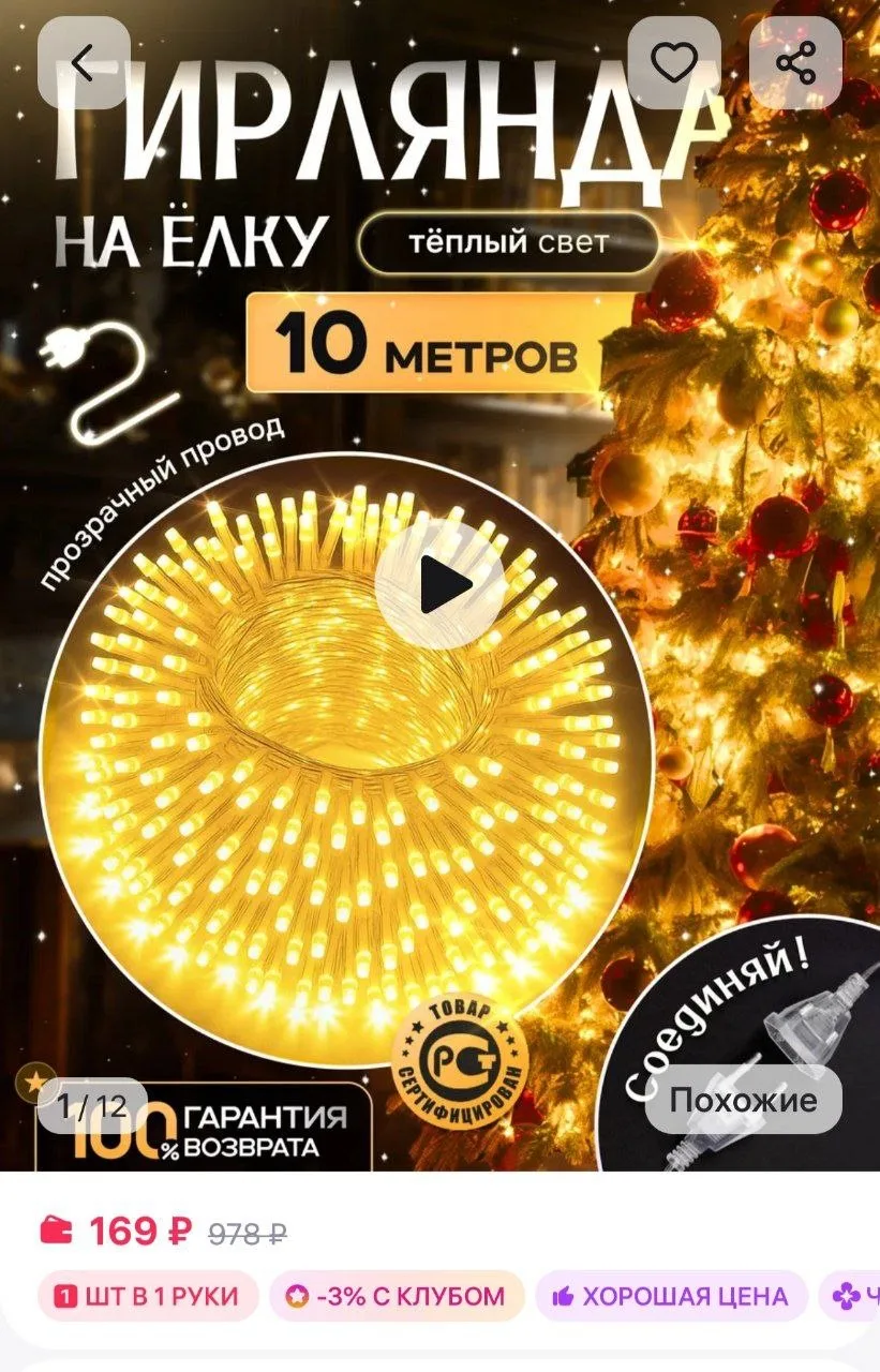 Гирлянда на елку новогодняя украшения светодиодная теплая FixZone Новый год