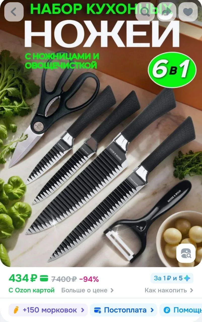 Набор кухонных ножей с ножницами 6 предметов нержавеющая сталь профессиональный
