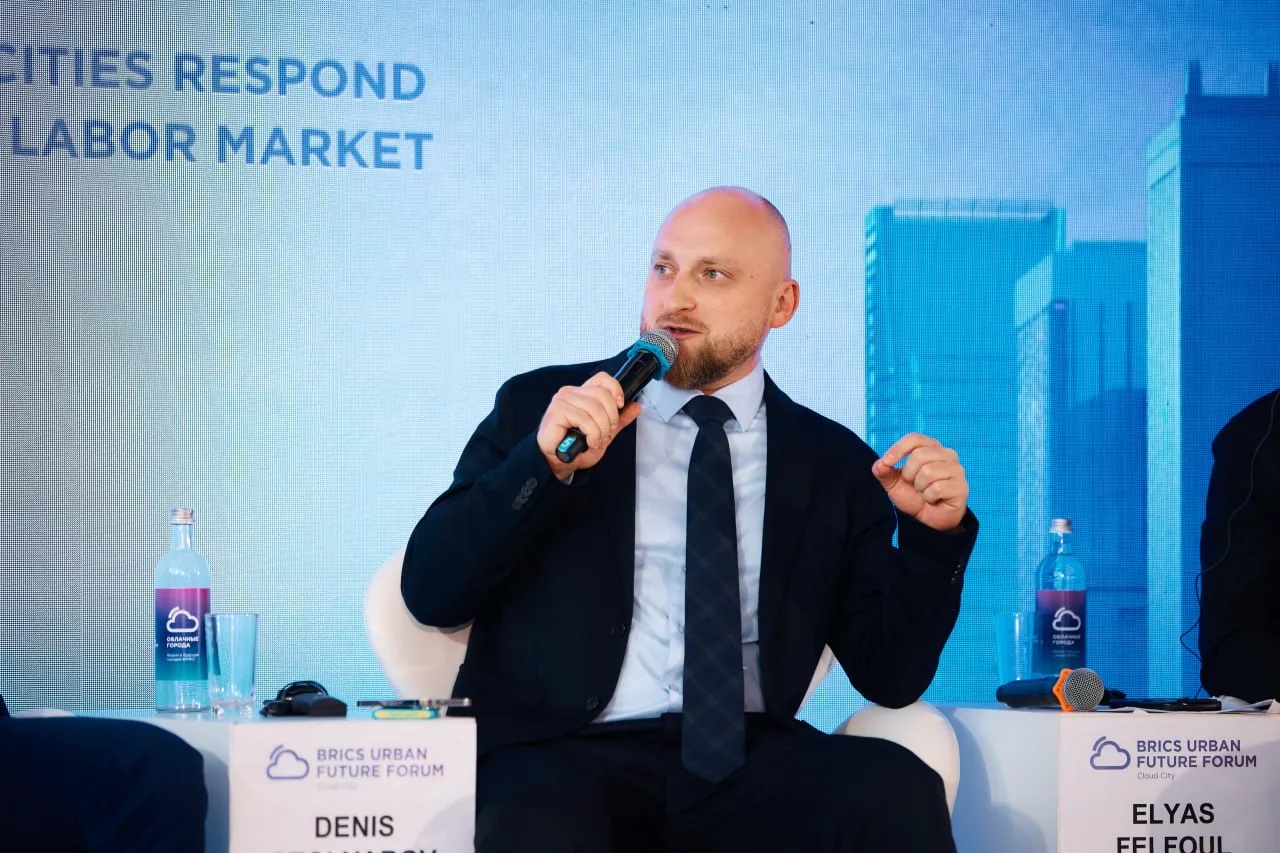 🧐 Как вузам адаптироваться к запросам рынка труда? Этот вопрос на Форуме о будущем городов БРИКС «Облачные города» был адресован Денису Столярову, проректору по работе со студентами Сколтеха.