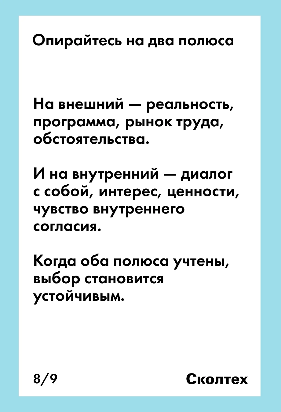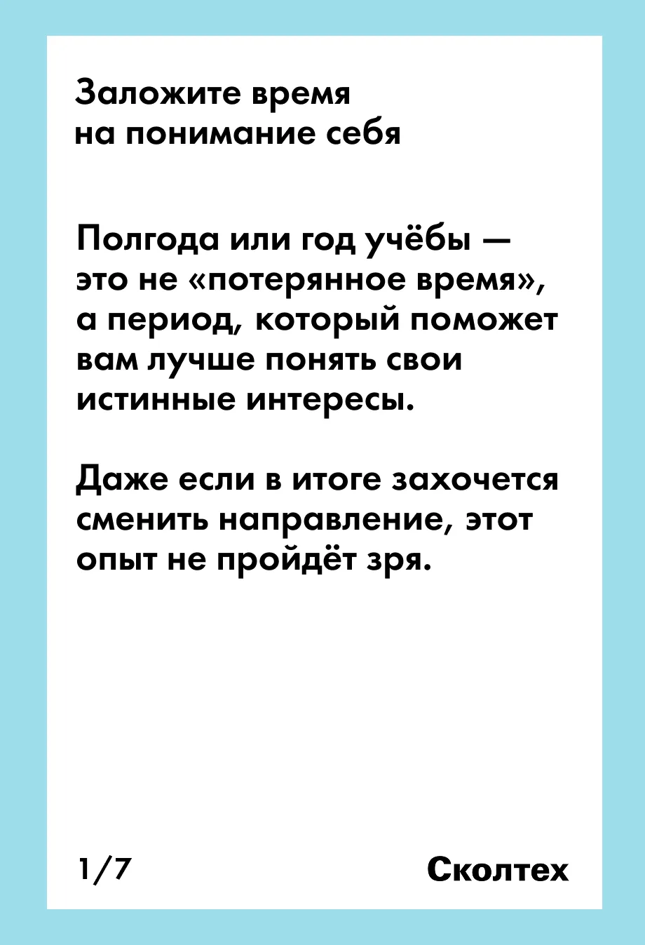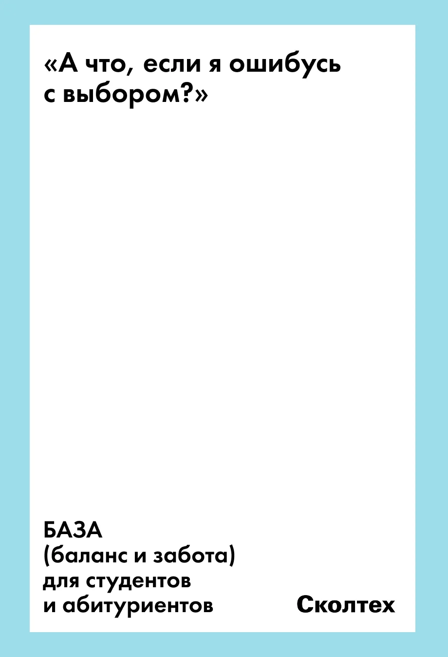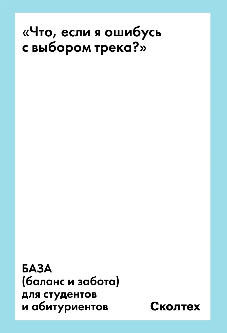 В нашем сервисе заботы БАЗА (Баланс и Забота) мы продолжаем разбирать самые острые состояния, связанные с поступлением и учёбой. На этот раз говорим о том, как выбрать свой трек, не потеряв себя в потоке информации и чужих ожиданий.