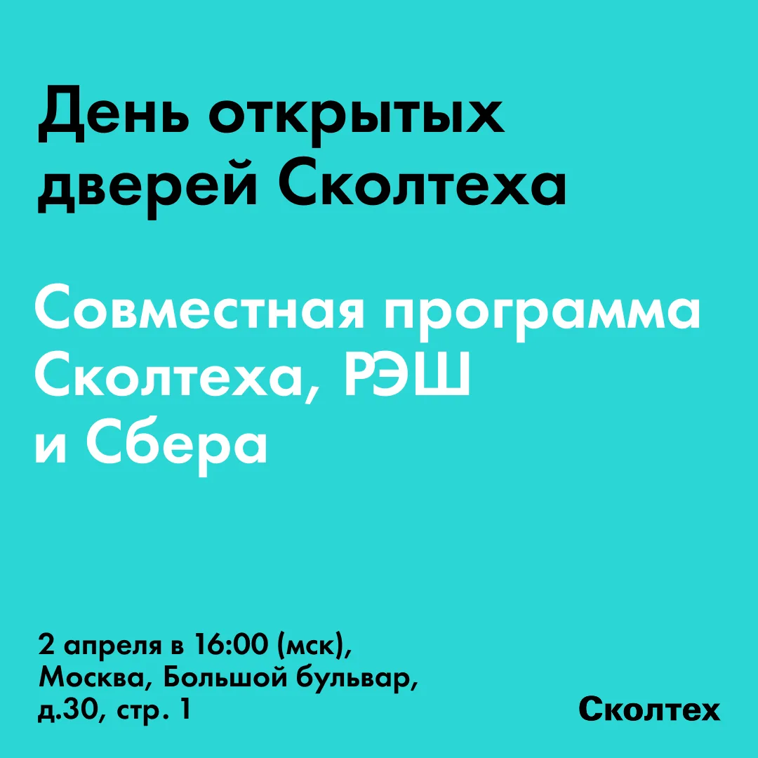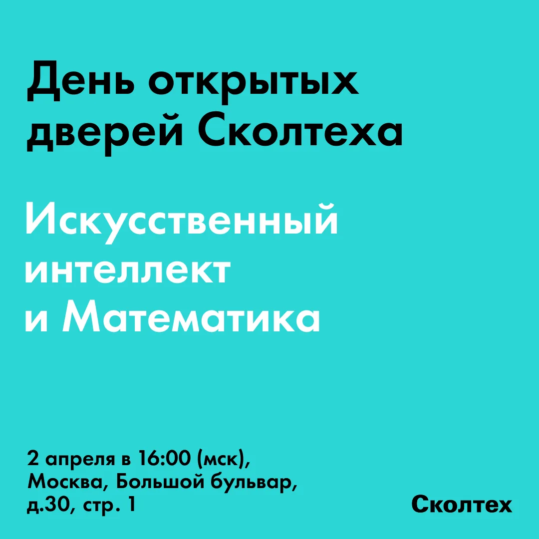 📅 2 апреля в 16:00 (мск) ждём вас в кампусе Сколтеха. В этот день вы узнаете о передовых исследованиях в области искусственного интеллекта, современных вычислительных методах, робототехнике, финтехе и математической физике — из первых уст, от профессоров и ведущих учёных.