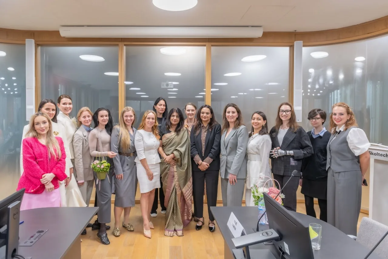 Круглый стол, модератором которого выступила эксперт Сколтеха по международному сотрудничеству Лина Абу-Мух Зоаби, был посвящен трудностям, с которыми сталкиваются женщины-ученые в своем предпринимательском пути. Опираясь на опыт исследователей Сколтеха и членов Skolkovo Women Club, участники дискуссии определили ключевые проблемы и возможные решения. Также в ходе мероприятия 4 проекта исследователей и аспирантов Сколтеха получили признание торгово-промышленной палаты.