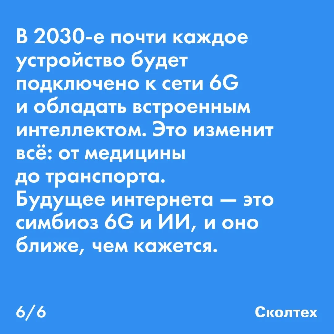 Мы поговорили с Алексеем Фроловым, профессором, директором Проектного центра беспроводной связи и интернета вещей Сколтеха о будущем интернета и что же нас ждёт после 6G. Все подробности - в наших карточках!