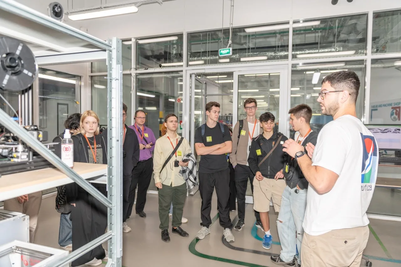 — посетили Фаблаб — пространство с оборудованием для студенческих и индустриальных проектов.