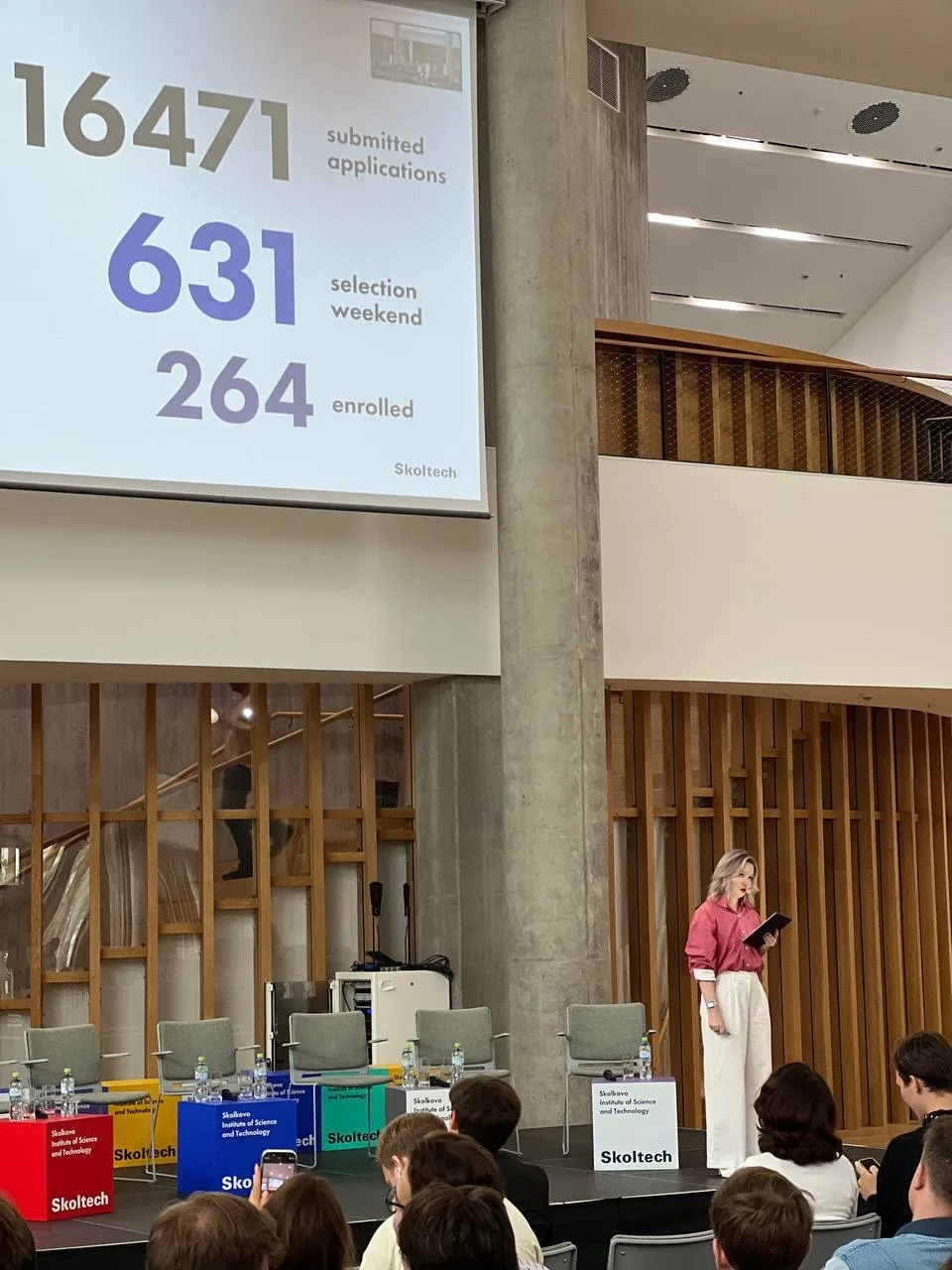 По традиции ребят в Сколтехе приветствовали на встречах, на которых представители института объясняют все нюансы жизни и учёбы в Сколтехе, а также отвечают на вопросы студентов.