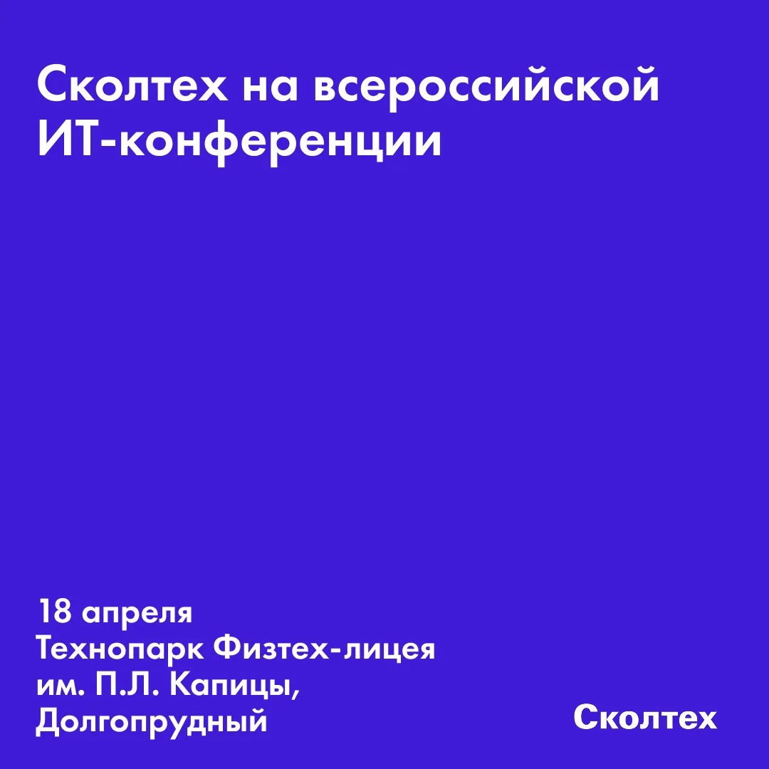 ⚡️ Приглашаем 18 апреля на всероссийскую Пурпурную ИТ‑конференцию в Технопарке Физтех-лицея им. П.Л. Капицы на стенд Сколтеха.