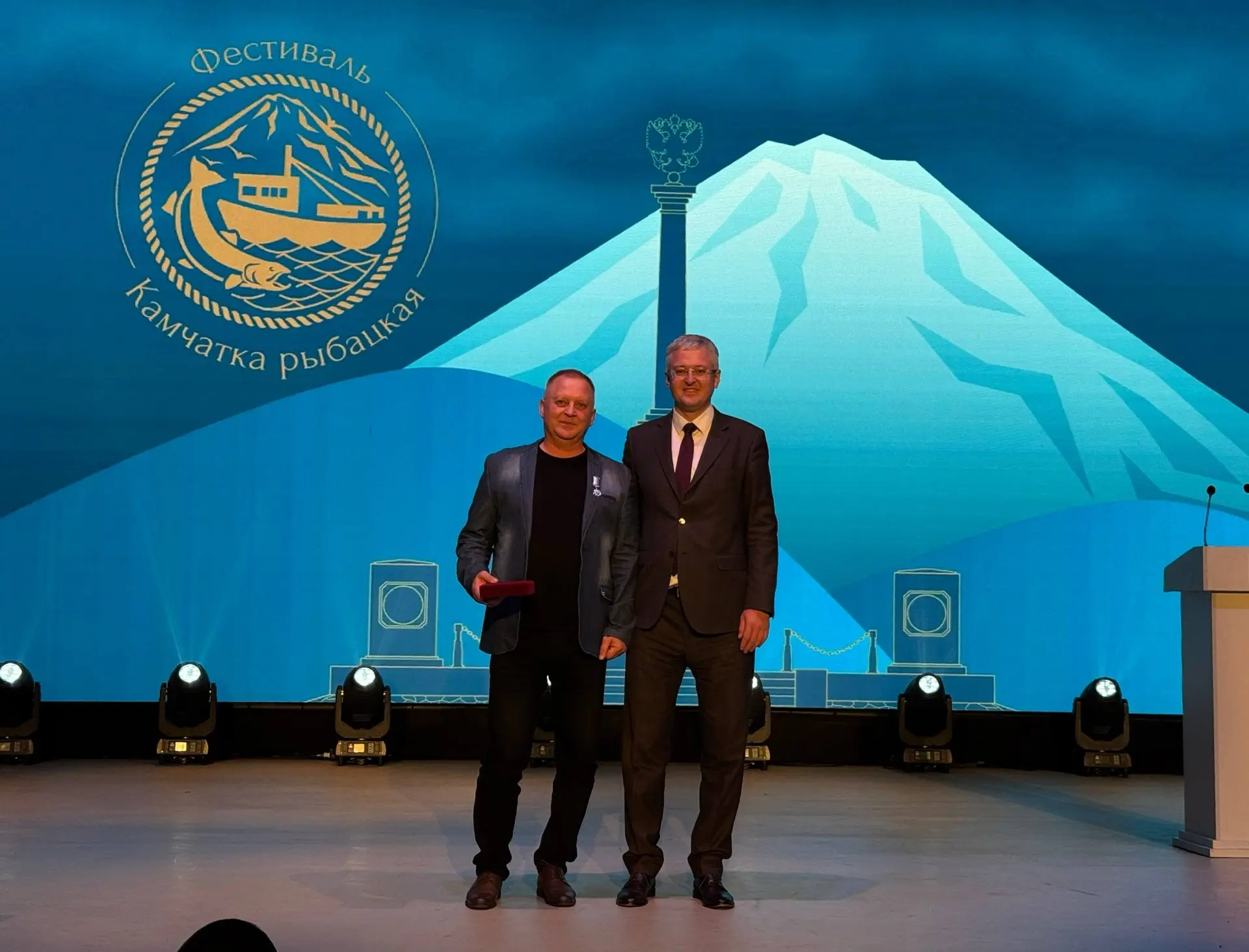 Вручил Почетный знак «Знатный рыбак Камчатки» уважаемому труженику отрасли, бригадиру рыбаков прибрежного лова ООО «Камбер» Константину Николаевичу Сальникову.