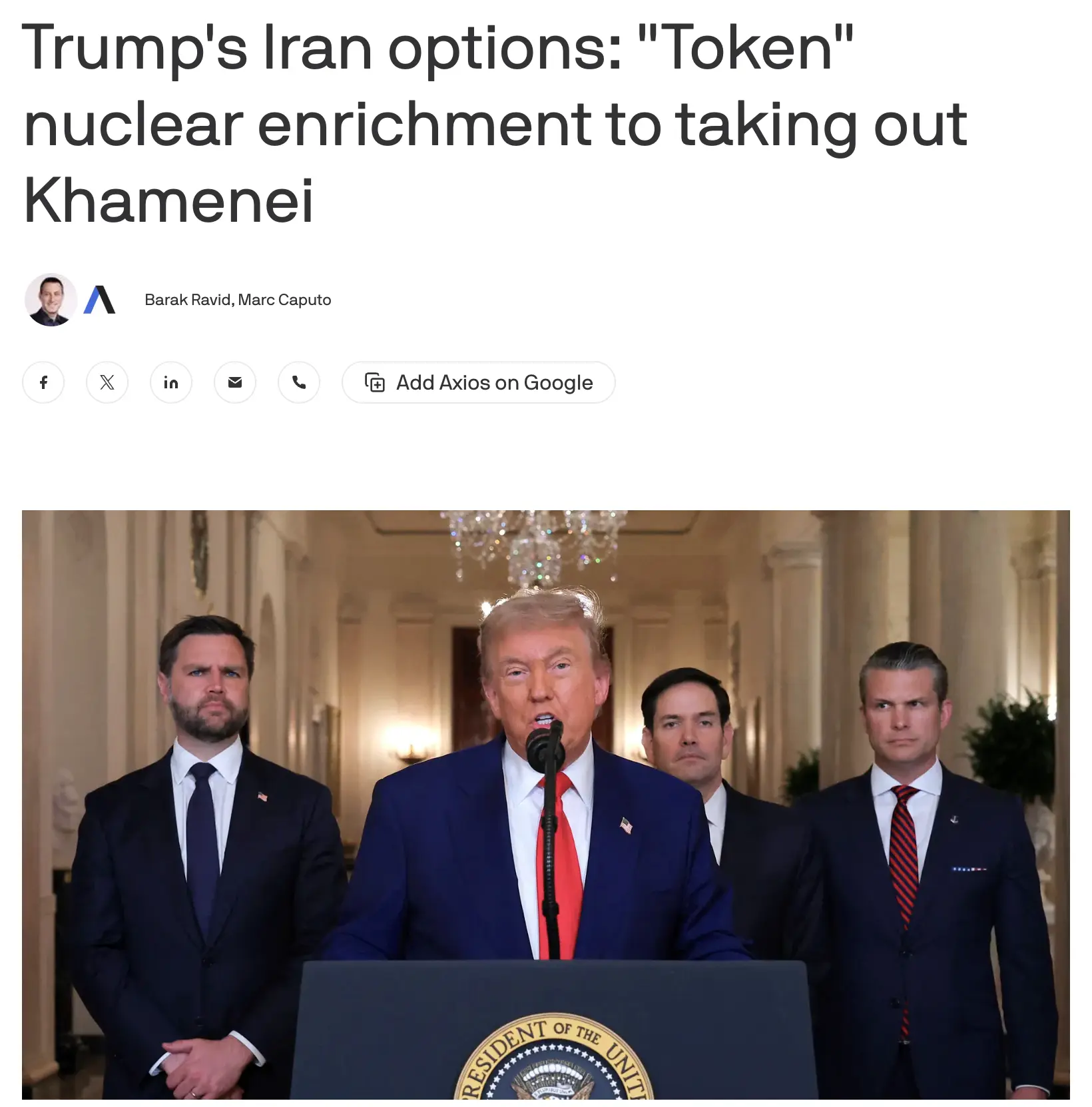 — Я знаю, что у нас есть «красные линии» со стороны США. А как обстоят дела с Ираном?