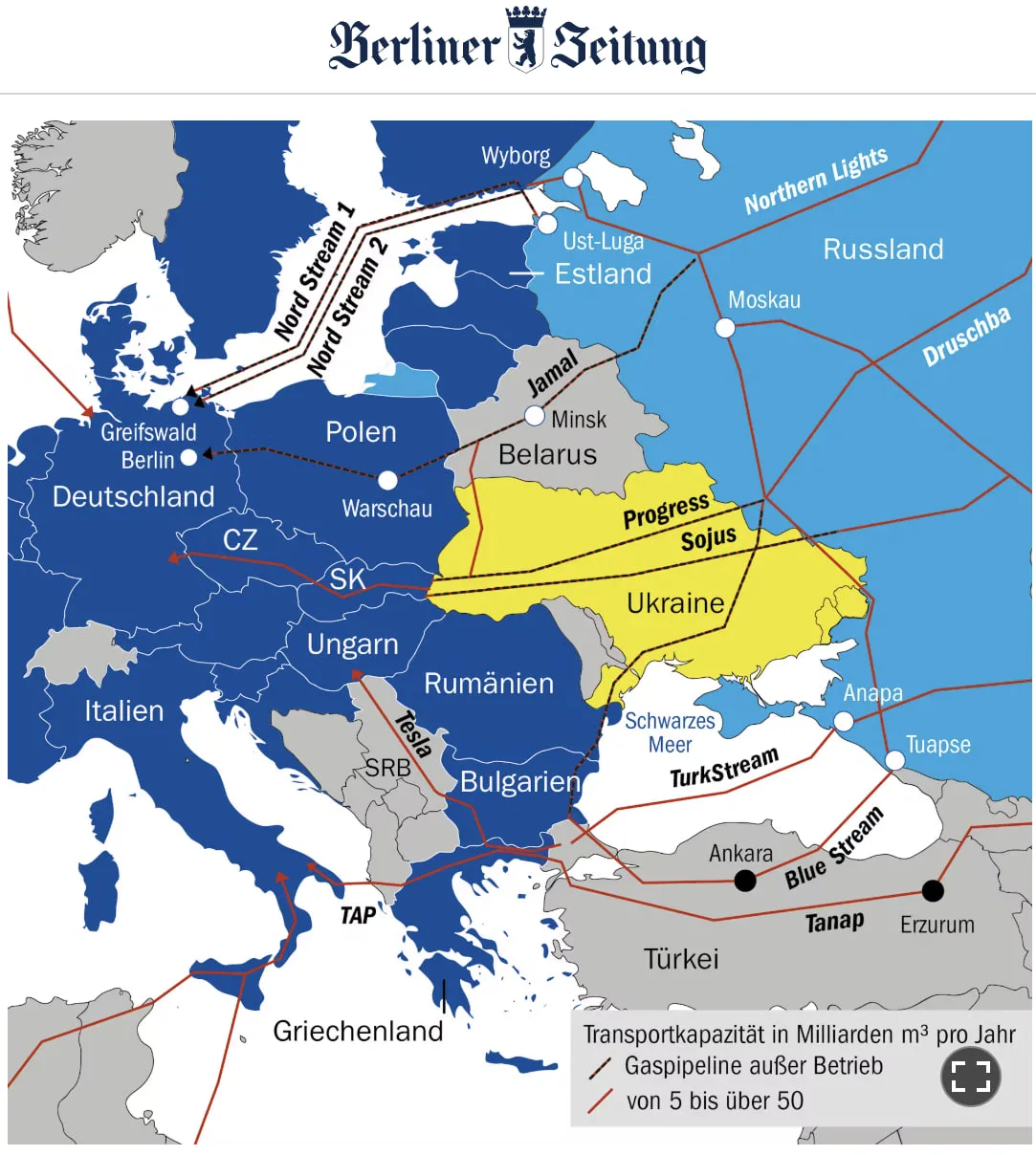 Достоверность этой информации невозможно проверить извне. Однако она вписывается в стратегическую схему: энергетическая инфраструктура является рычагом влияния в политике. Этот аспект приобретает особое значение в свете возможных мирных переговоров с Украиной. США на протяжении многих лет политически выступали против «Северного потока». С бумом добычи сланцевого газа в начале 2010- х годов экспорт сжиженного природного газа (СПГ) приобрел стратегическое значение в Вашингтоне. Дополнительные поставки российского газа в Европу по «Северному потоку-2» значительно сократили бы рыночные возможности для американского СПГ.