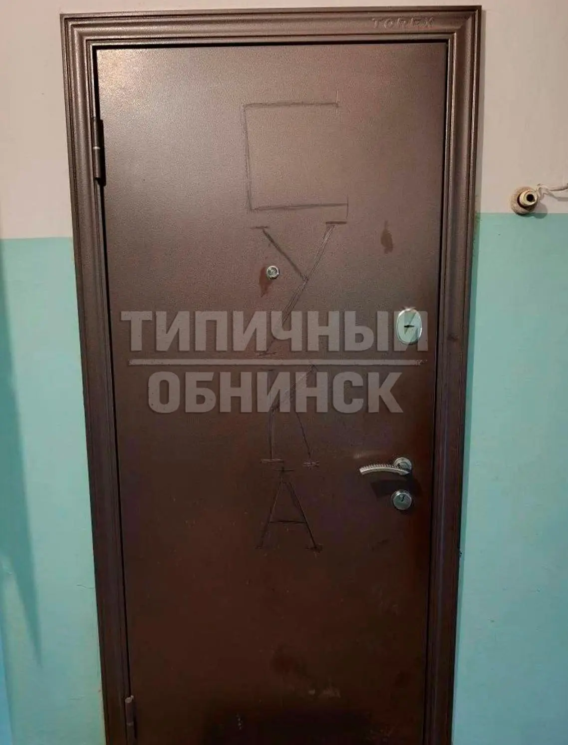 Вот так теперь выглядит дверь после ночного «визита» неадекватного соседа