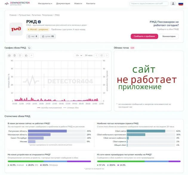 Пользователи массово жалуются, что не могут зайти в личный кабинет, купить билеты или посмотреть расписание. Сбой совпал с началом сезона отпусков, когда люди активно покупают билеты.