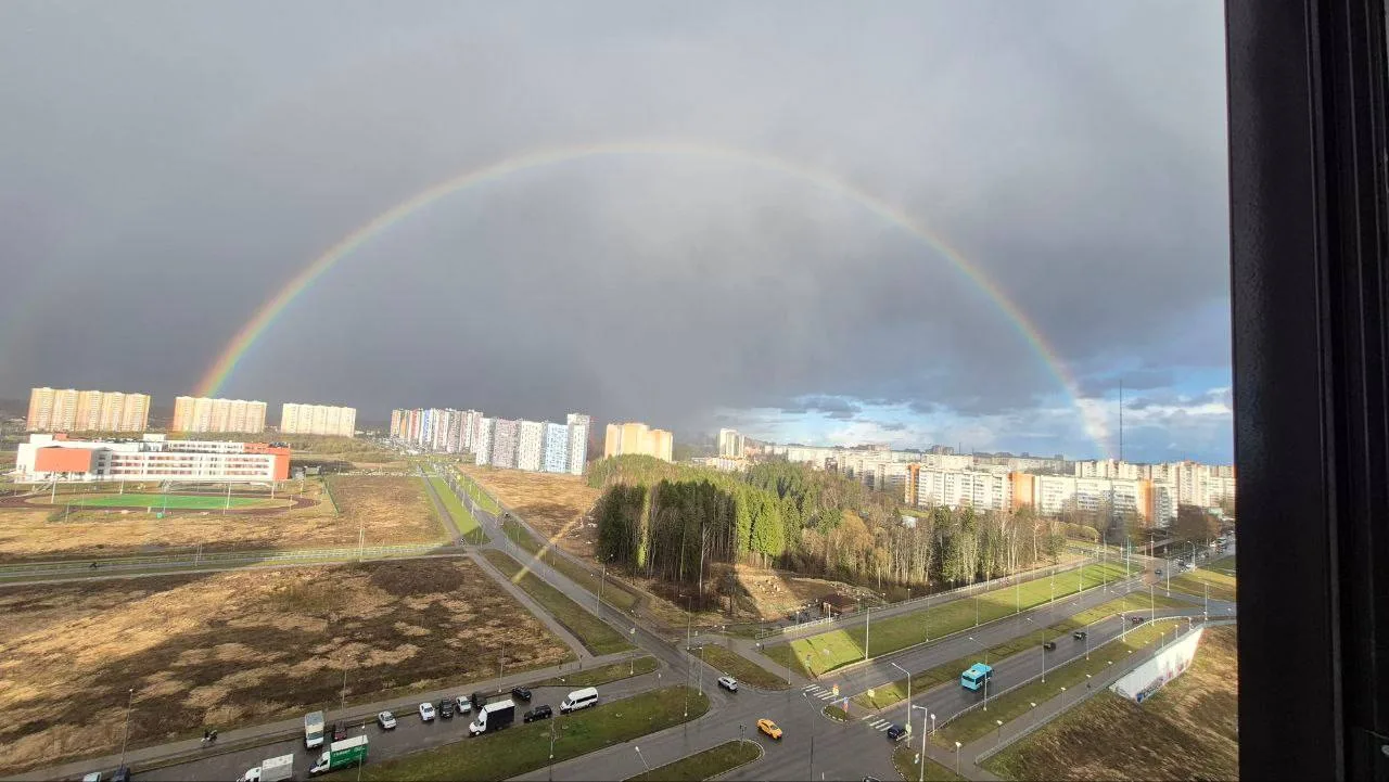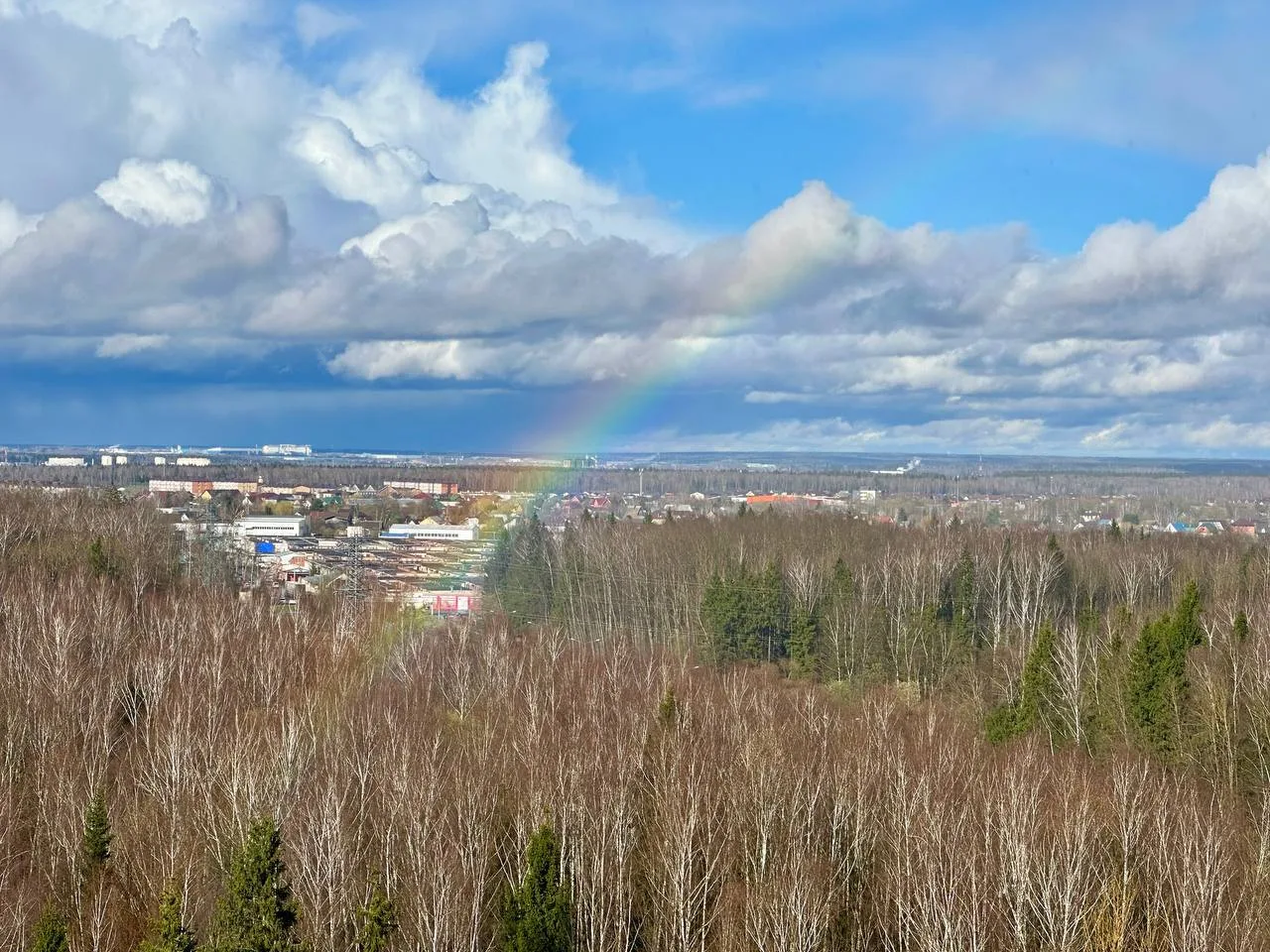 Сегодня над Обнинском появилась первая в этом году огромная радуга.