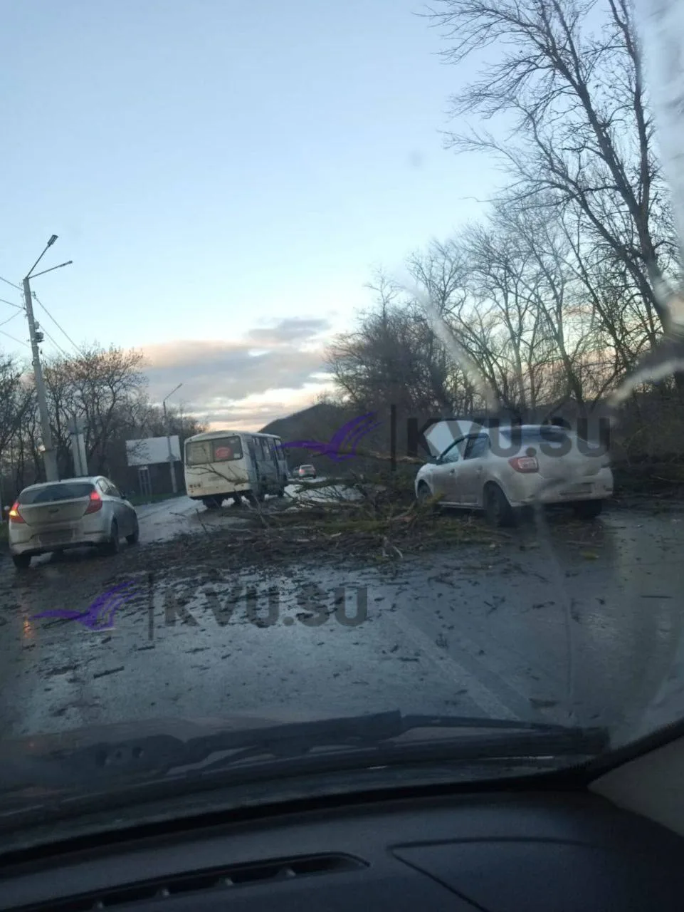😯 В городе Шахты дерево упало на дорогу, зацепив проезжавший по ней автомобиль.