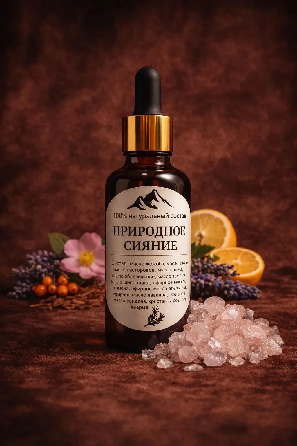 Масло «Природное сияние» — это лёгкое масло, которое быстро впитывается и не оставляет никакой жирной плёнки, но при этом ваша кожа будет круто увлажнена! Кожа после него дышит, выглядит свежей и ухоженной, без ощущения перегруженности. Идеально, если хочется питание и результата, но без тяжести — именно то, что делает уход комфортным и заметным уже с первых дней. Аромат этого масло просто волшебное. Я называю его ангельским ароматом ✨ так пахнут новорожденные 🤗