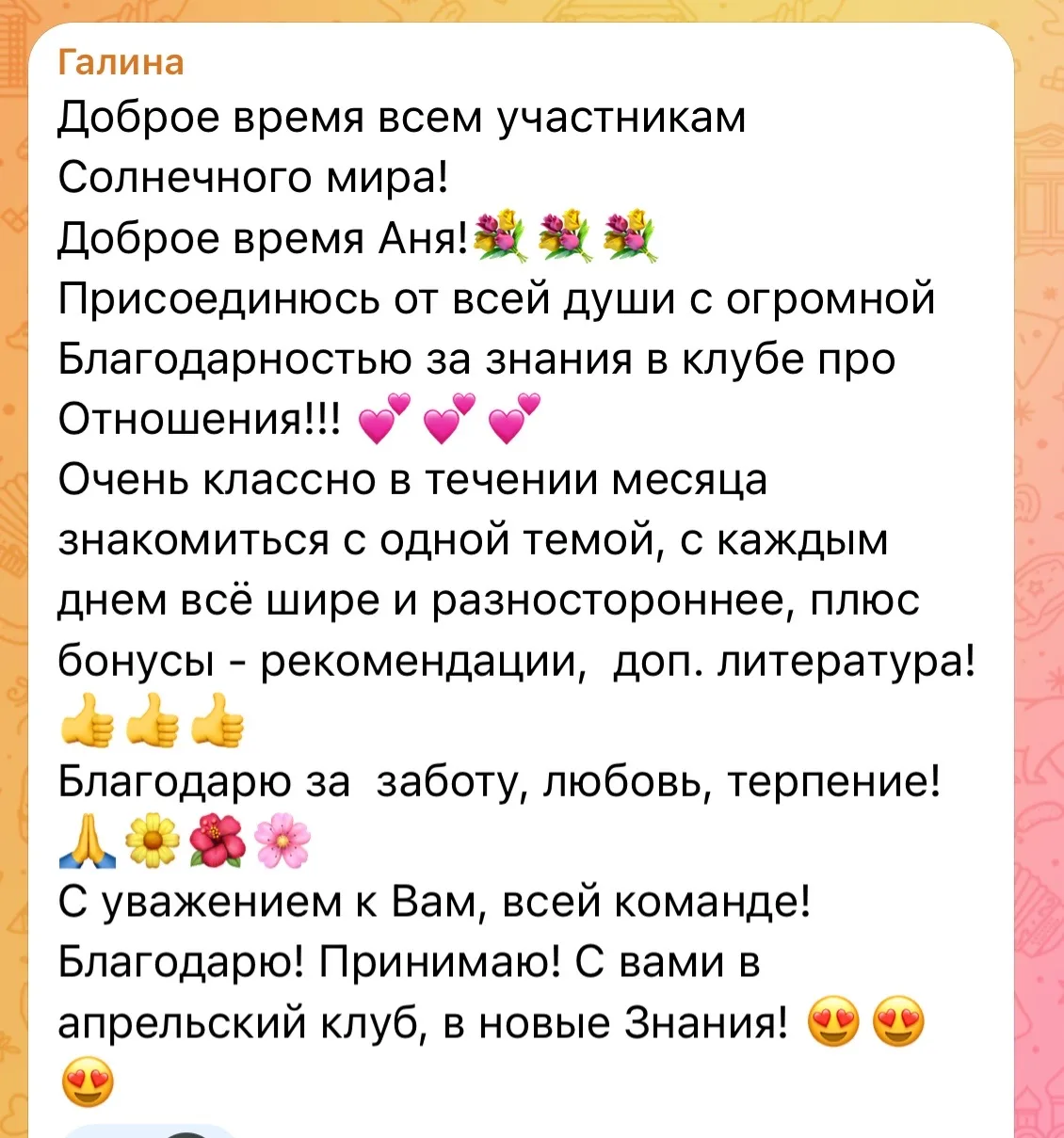 Если вам не пришла ссылка с доступом в апрельский клуб, то необходимо проверить папку спам и рассылки. По техническим проблемам пишите на рабочий номер в MAX +79168565082, указав свой телефон и электронную почту 🤗