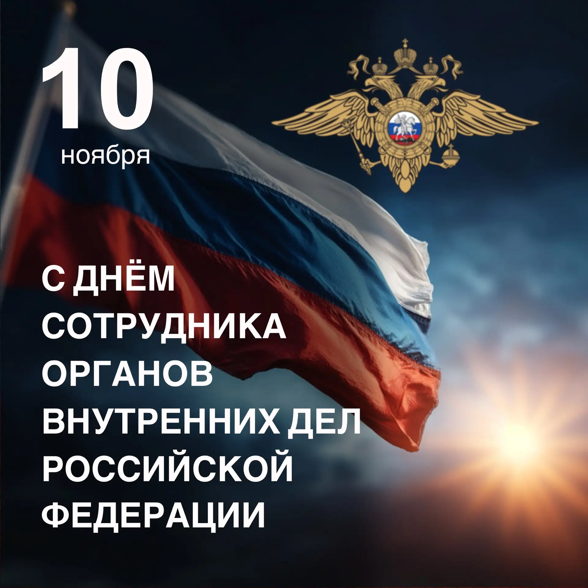 Поздравляю сотрудников органов внутренних дел с профессиональным праздником! Благодарю за высокую ответственность при исполнении служебного долга! Особые слова признательности и уважения – ветеранам МВД. Крепкого здоровья, благополучия и успехов на службе!