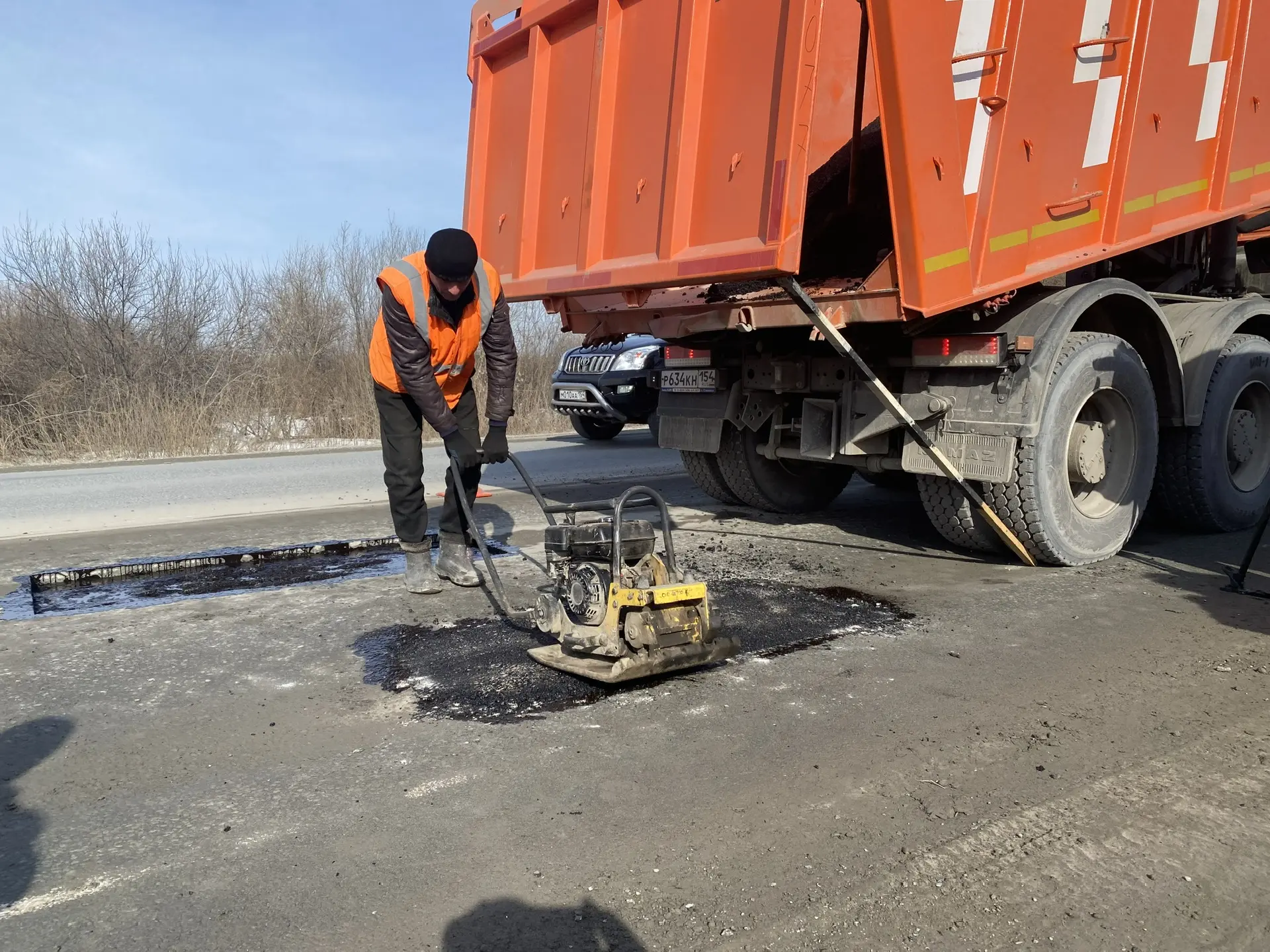 Сегодня работы по ямочному ремонту на муниципальных дорогах и ключевых магистралях, связывающих районы и регионы, ведутся в усиленном режиме – подрядные организации привлекают дополнительные ресурсы для сокращения сроков. На дорогах Новосибирской области уже восстановлено более 1000 кв м асфальтобетона и свыше 6000 кв м щебеночного покрытия. Эта оперативная мера весной позволит обеспечить безопасное движение, снизить риск аварийных ситуаций и сделать дороги более пригодными для эксплуатации в условиях меняющейся погоды. При наступлении устойчивой сухой погоды и после окончания паводков начнется полноценный ремонт дорог. Уже запущены 10 из 16 асфальтобетонных заводов, поставляющих горячие смеси для проведения намеченных ремонтных работ.