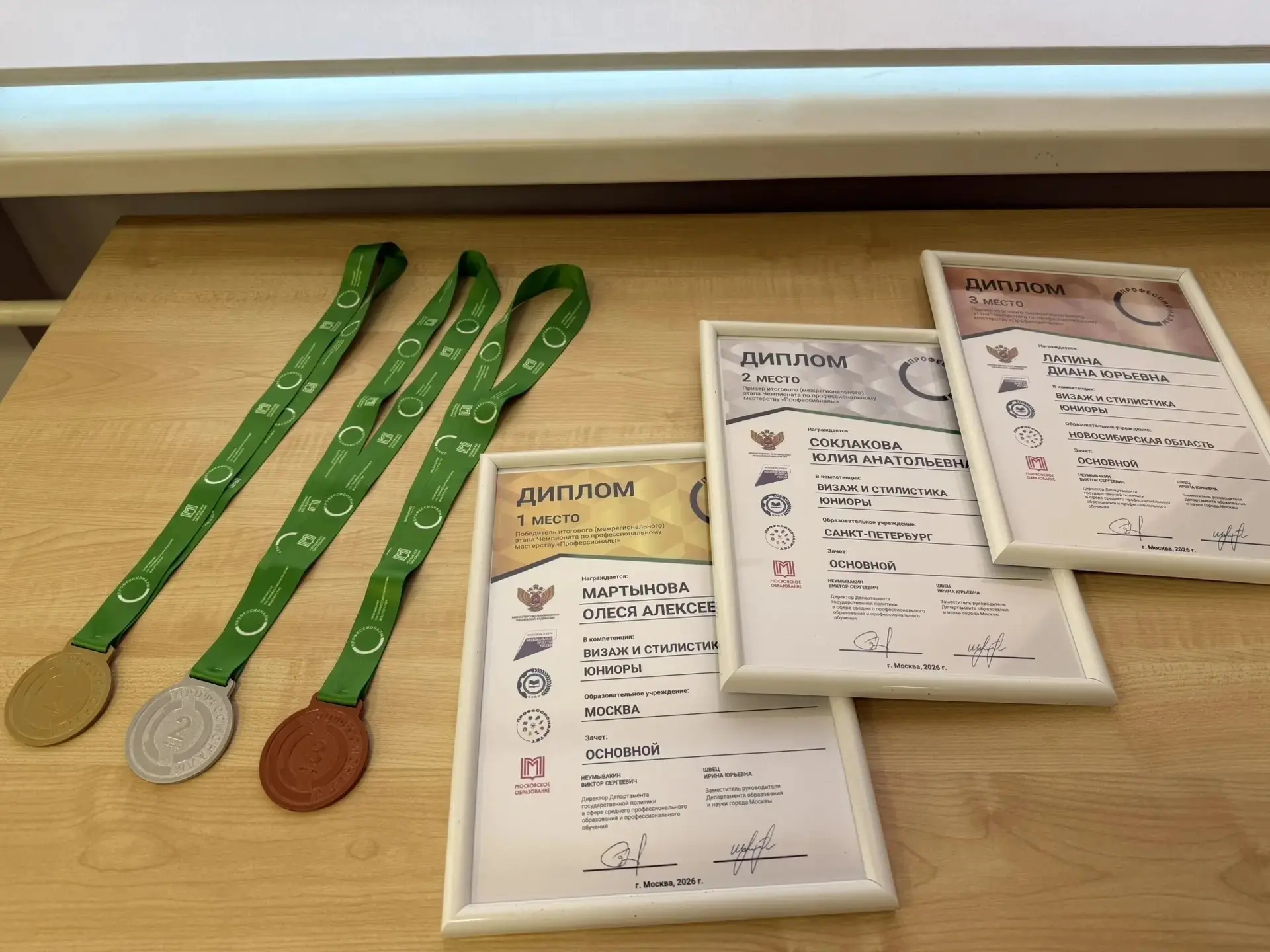 Конкурсанты из нашего региона уже в ходе первых состязаний достигли хороших результатов. Золотые медали получили: Анфиса Лазарева в компетенции «Полиграфические технологии», Диана Долгушина в компетенции «Пчеловодство», Есения Грицкевич в компетенции «Проводник пассажирского вагона», Татьяна Бондаренко в компетенции «Эксплуатация судов водного транспорта». Серебряную медаль в компетенции «Металловедение» завоевал Денис Наумов. Бронзовые медали у Дианы Лапиной в компетенции «Визаж и стилистика. Юниоры» и Олега Антонова в компетенции «Полиграфические технологии. Юниоры».