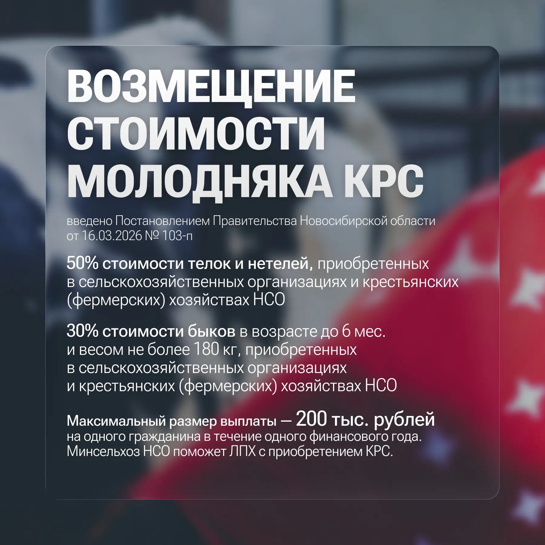 Также прозвучало предложение расширить направление поддержки на восстановление разных видов животных и птицы, не только крупного рогатого скота – над этим будем работать, нам важно восстановление в целом личных подсобных хозяйств.