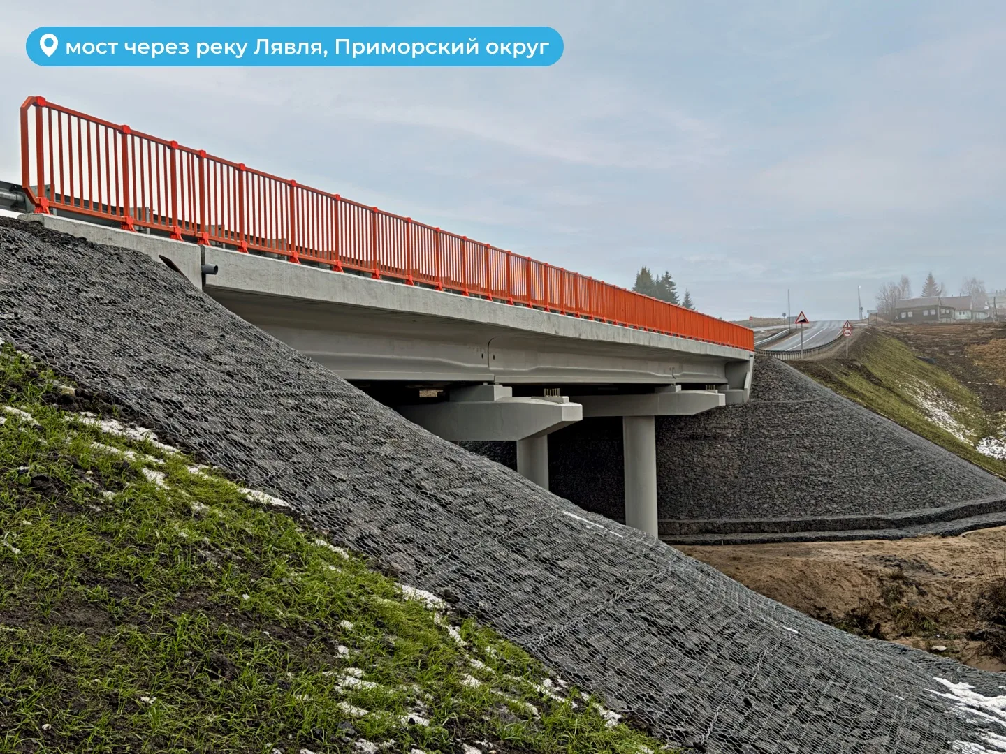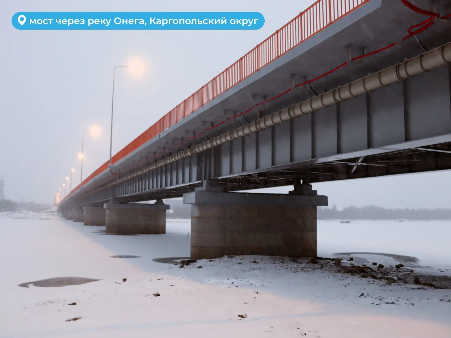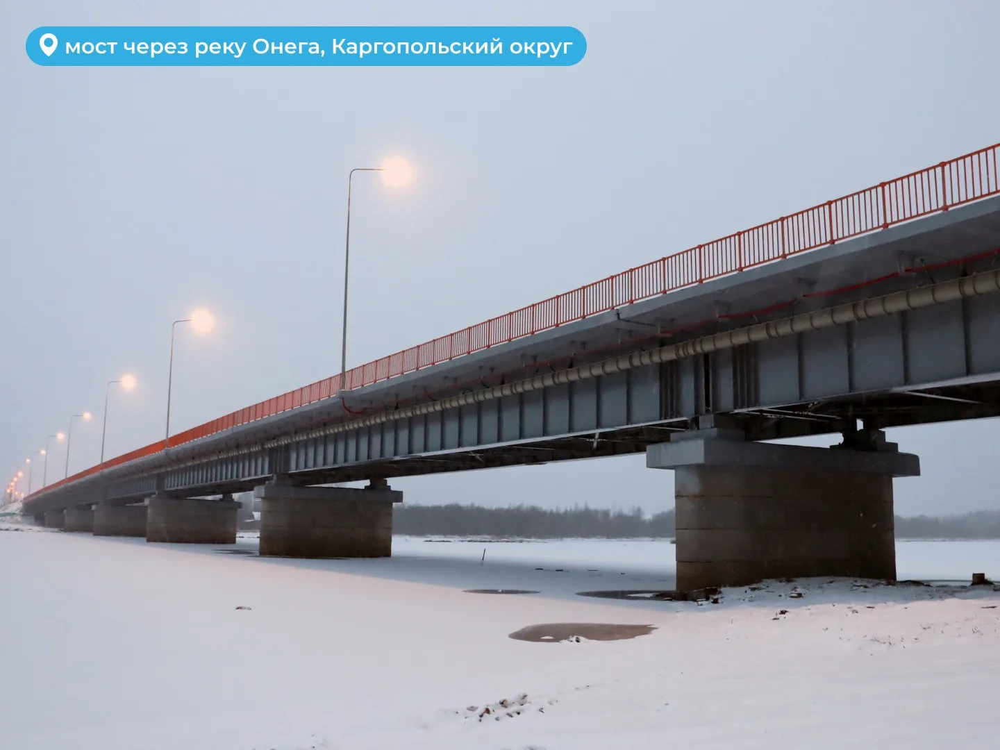 Сдали в эксплуатацию сразу два моста – через реку Лявля в Приморском округе и реку Онега в Каргопольском округе. Оба дорожных объекта привели в нормативное состояние в рамках нацпроекта «Инфраструктура для жизни».