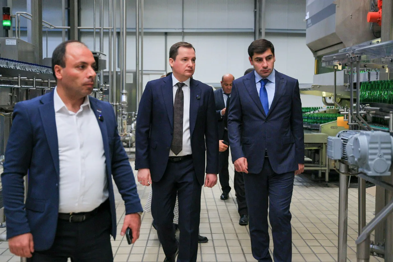 Также посетили завод компании «Джермук групп», где производят минеральную и природную родниковую воду. Предприятие осуществляет добычу и розлив минеральной лечебно-столовой воды «Джемрук» и природной воды родника Бюрег.