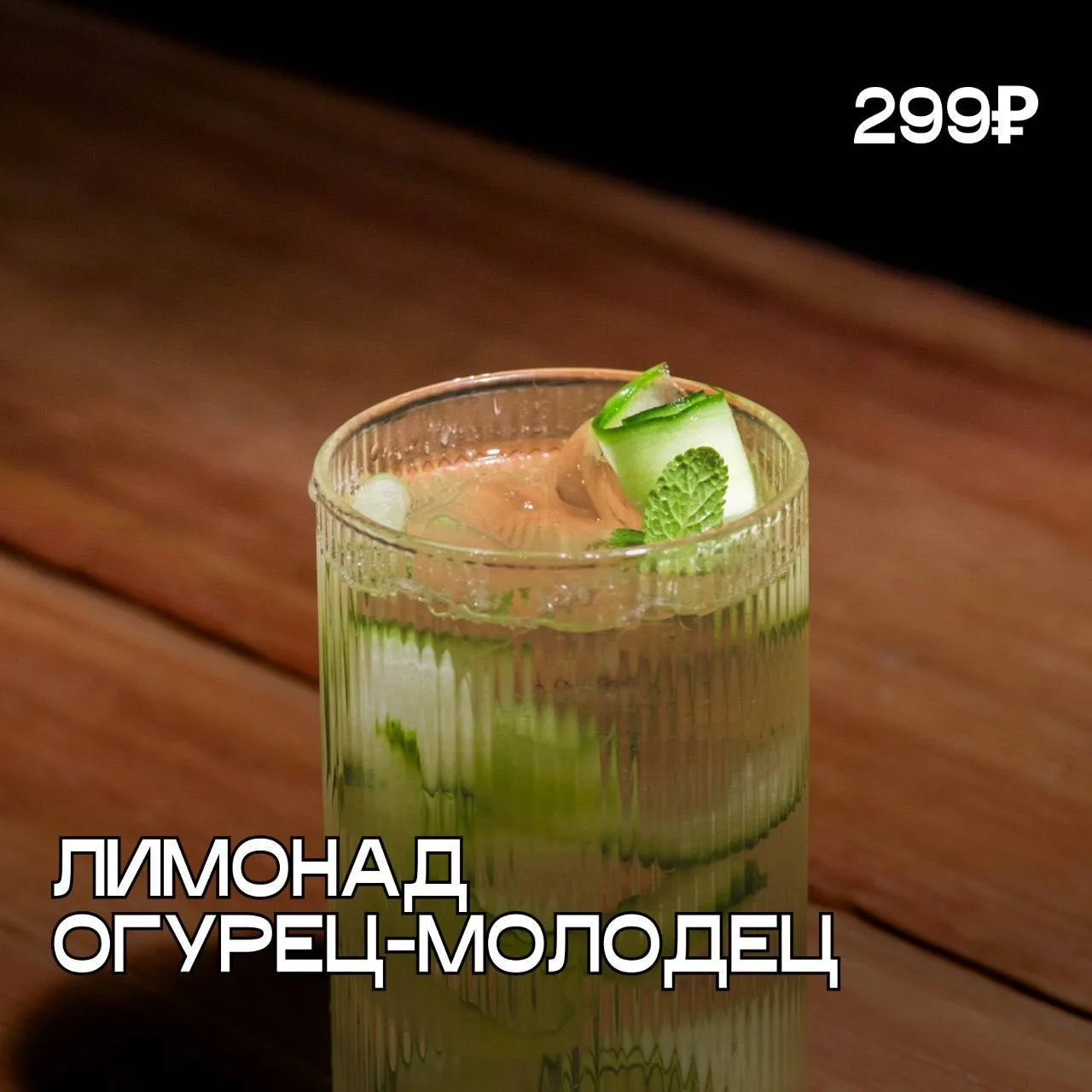 Огурец‑молодец (299₽) — прохлада свежего огурца в лёгком газированном напитке.