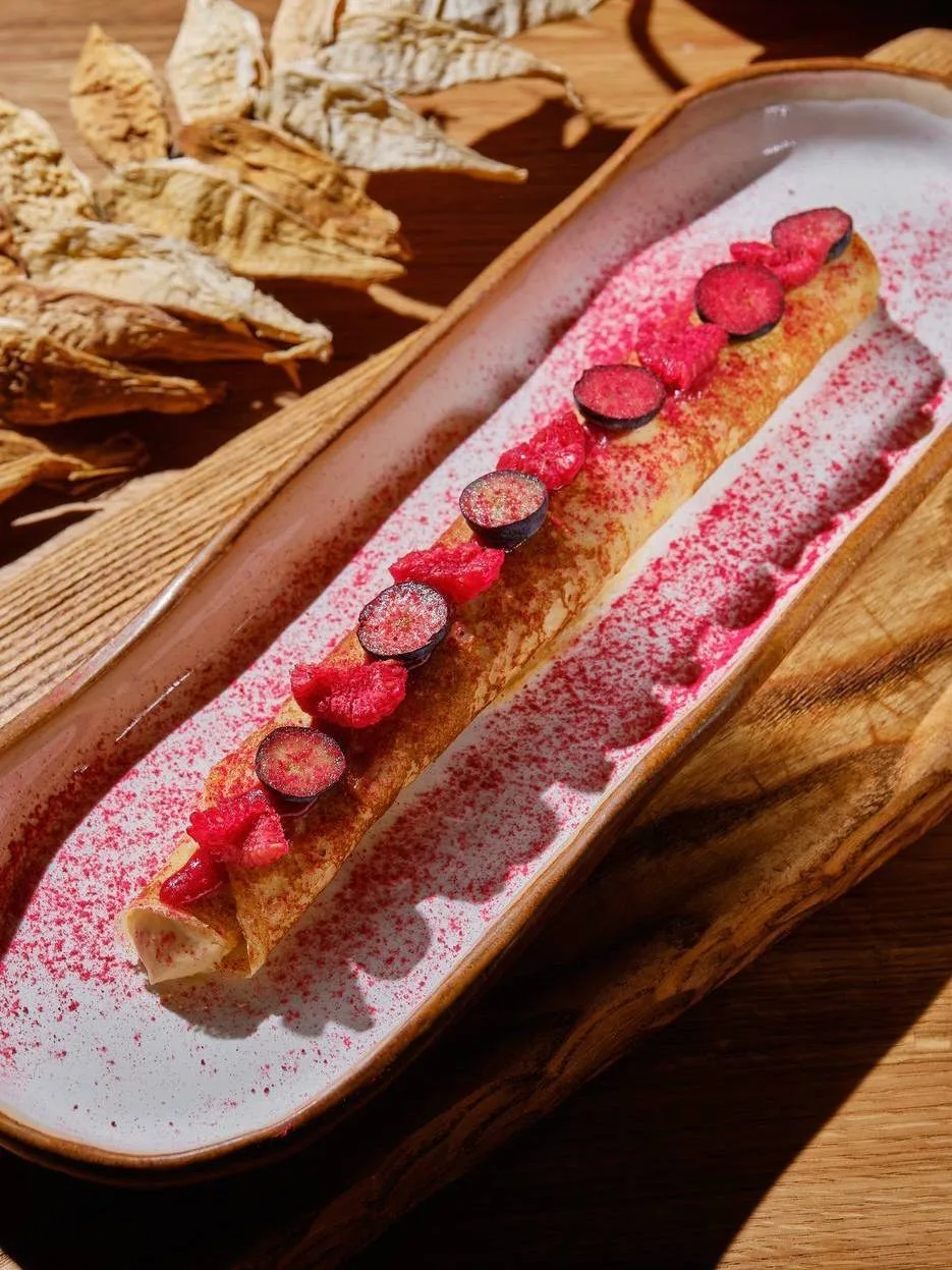 Коктейль готовится на основе игристого вина с каркаде и бузиной. Его лёгкая ароматическая палитра с тонкими цветочными нотами станет идеальным началом весеннего вечера. В паре с ним — нежнейший десерт на яблочной пастиле с кремом из бузины. Деликатный вкус и воздушная текстура создают изысканный контраст с игристым напитком, превращая подачу в маленький ритуал наслаждения.