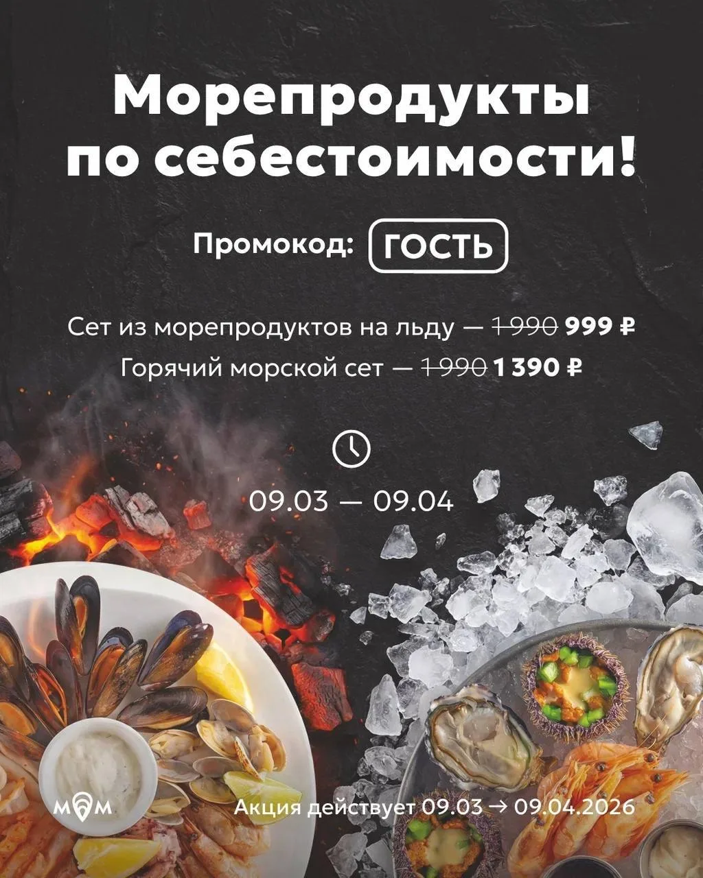 Не забудьте назвать промокод ГОСТЬ при заказе и попробуйте морепродукты по себестоимости 🤩