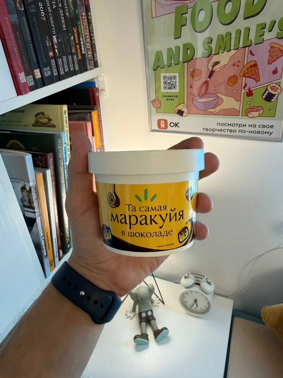 Следующая в коллекции — конфета‑цыплёнок. Внутри вас ждёт воздушный ганаш со сливками и экзотической нотой маракуйи. Лёгкая кислинка тропического фрукта удивительно гармонично дополняет сливочную основу: этот вкус точно запомнится надолго.