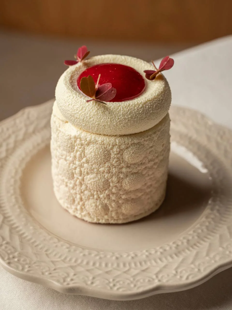 В его основе — нежное песочное тесто с лёгкими цитрусовыми нотами, задающее свежее весеннее настроение. С ним гармонично сочетается воздушный бисквит с ароматом жасминового чая и кокоса. Пикантную кислинку вносит грейпфрутовый мармелад, а яркую ягодную ноту — малиновое кули. Всё вместе создаёт удивительную гармонию контрастов, которая раскрывается с каждым кусочком.