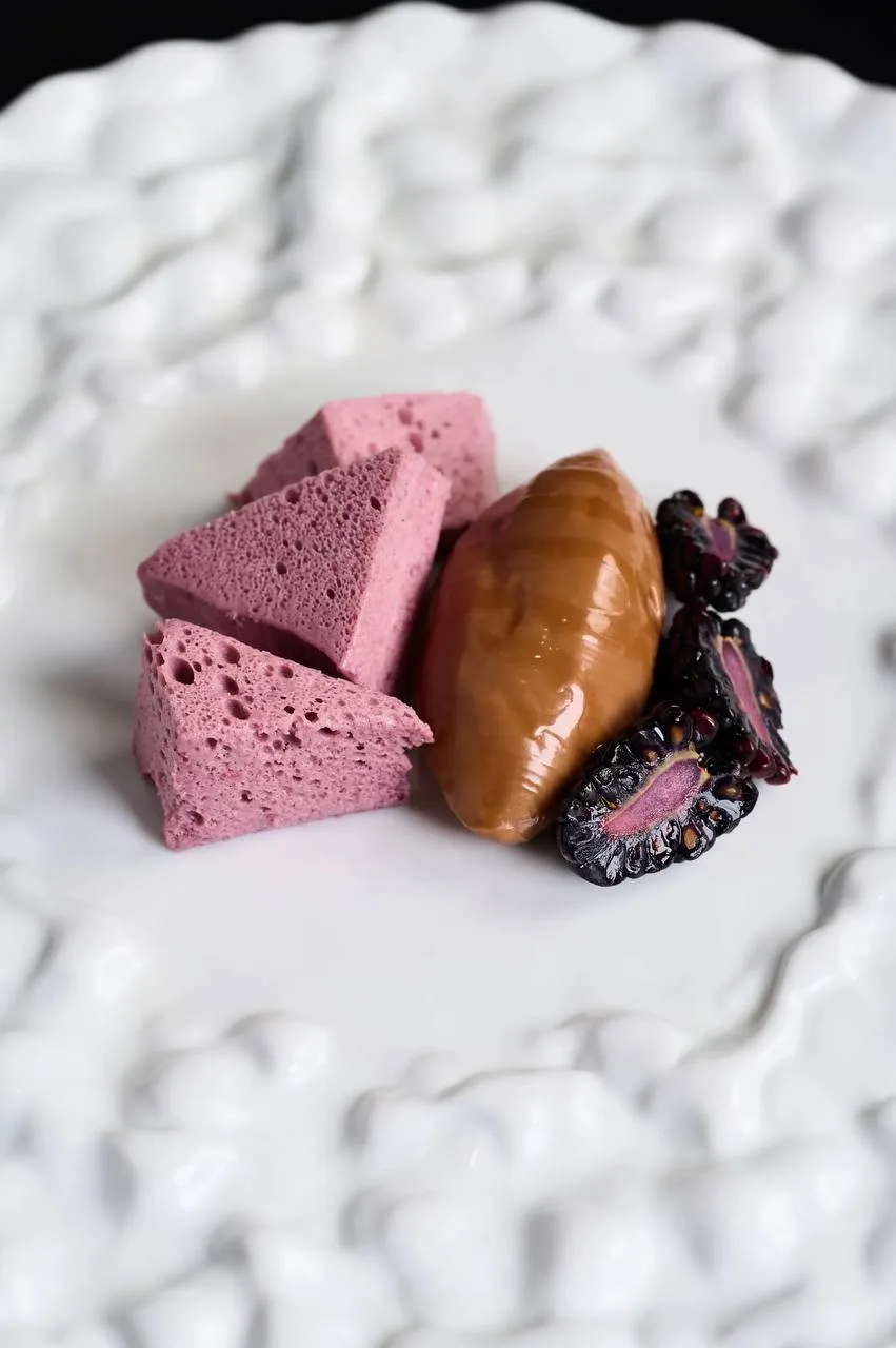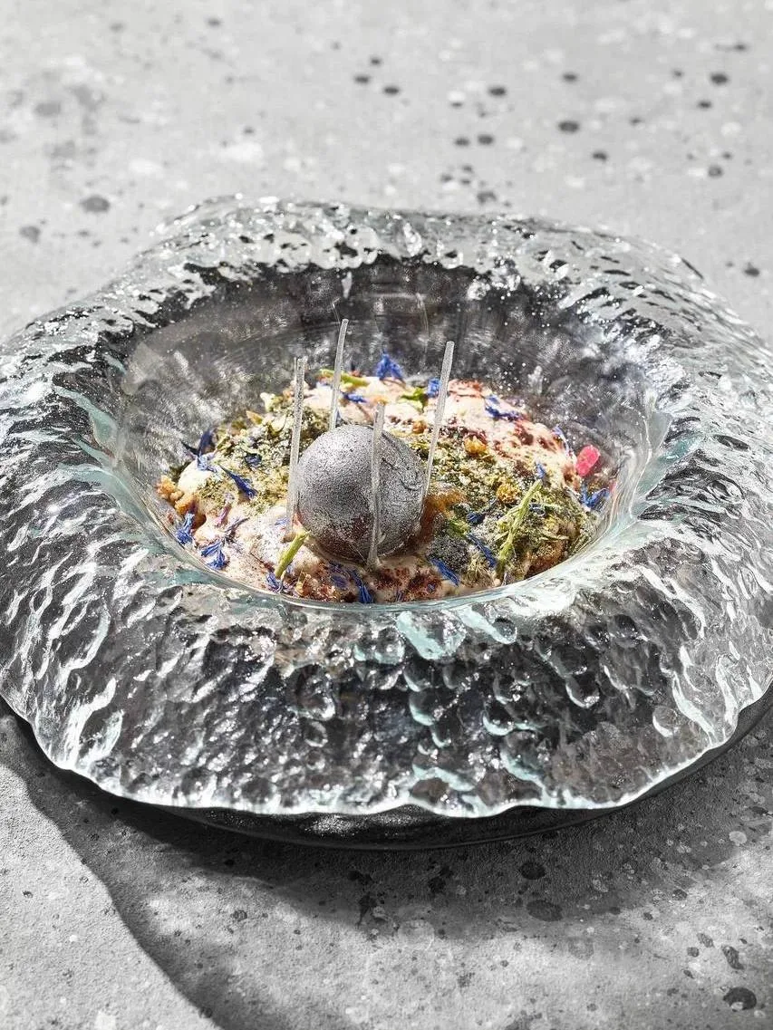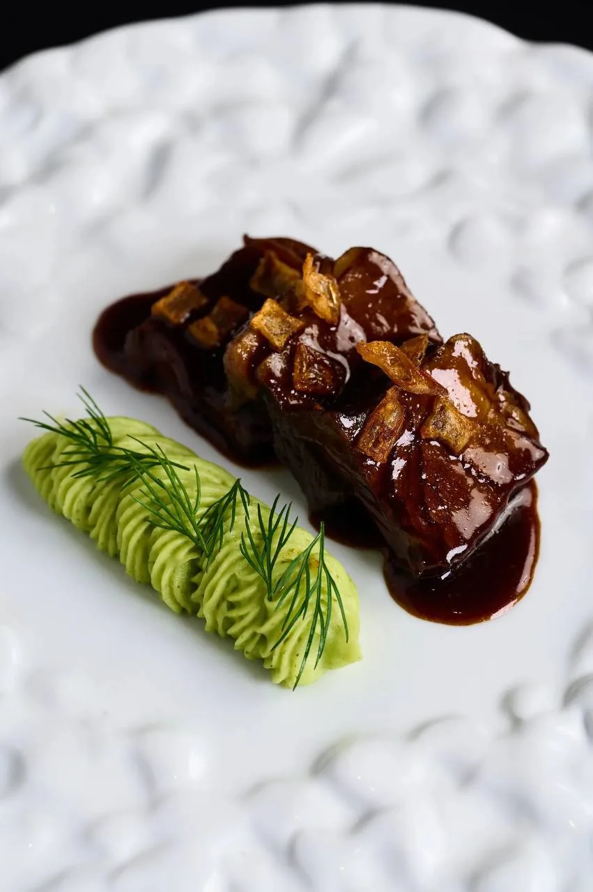 Сет за 3200₽ — это настоящая гастрономическая экспедиция к новым вкусовым рубежам. Начните с паштета из утки с гелем из вяленого абрикоса и «космическим» хлебом — сочетание, раскрывающее нежность и загадочность вкуса. Далее — мраморная грудинка в квасной глазури с пюре из щавеля и сублимированным луком: баланс традиций и инноваций в каждой детали. Завершите ужин десертом — мороженым из чёрной смородины с шоколадным кремом и хвойной ежевикой, которое перенесёт вас в лес среди звёзд.