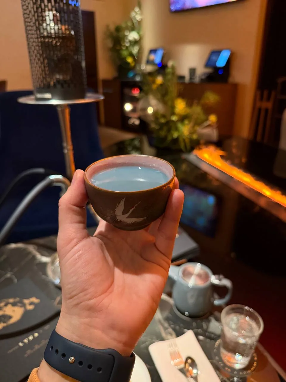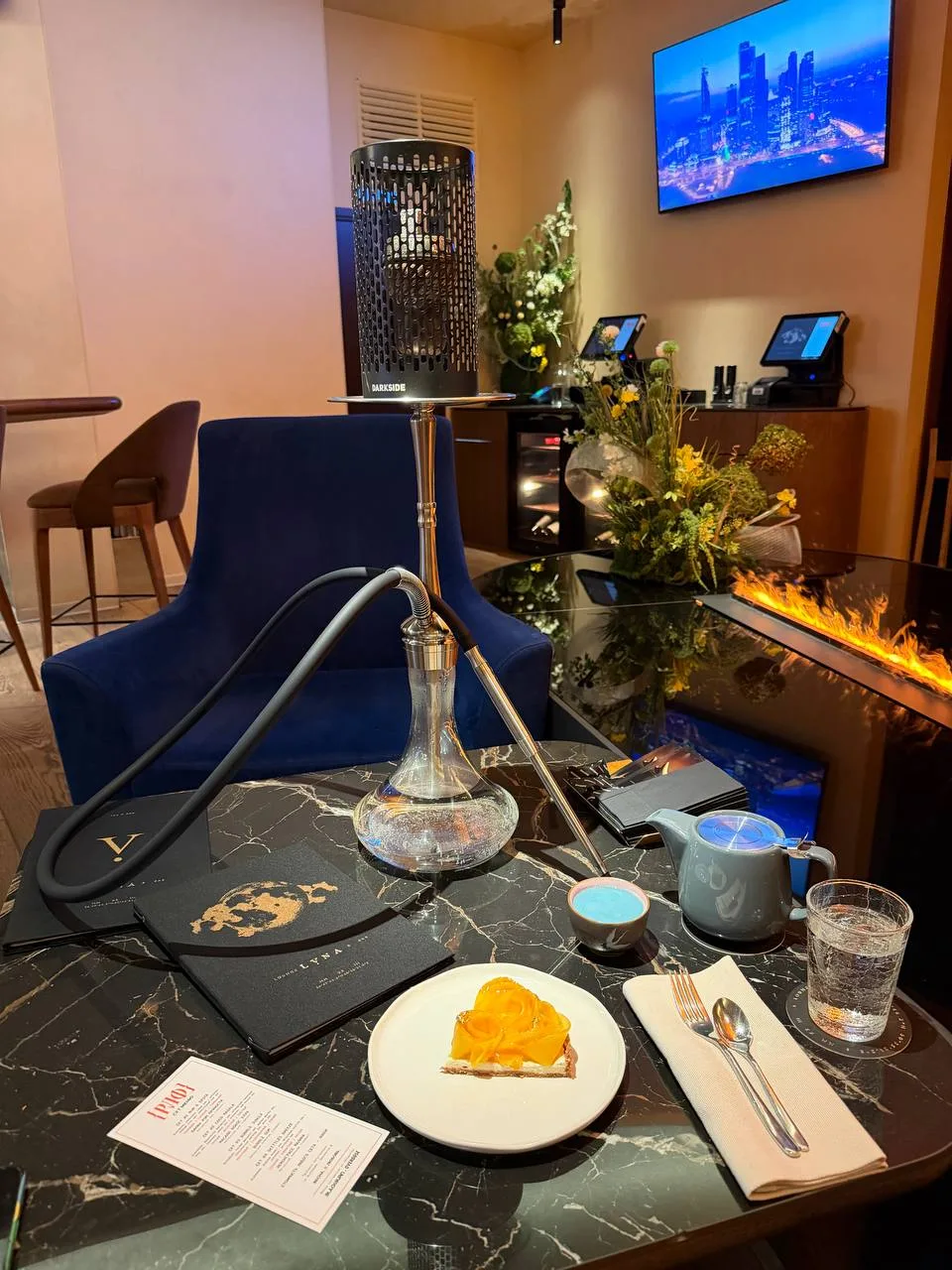 В паре с кальяном подаётся авторский чай «Масала Кокос Улун». В нём тонко сбалансированы тёплая пряность масала, лёгкая кокосовая сладость и утончённость улуна. Напиток не перебивает вкус кальяна, а деликатно его дополняет, создавая цельное вкусовое пространство. Это похоже на диалог двух мастеров, где один задаёт тему, а другой искусно её развивает.